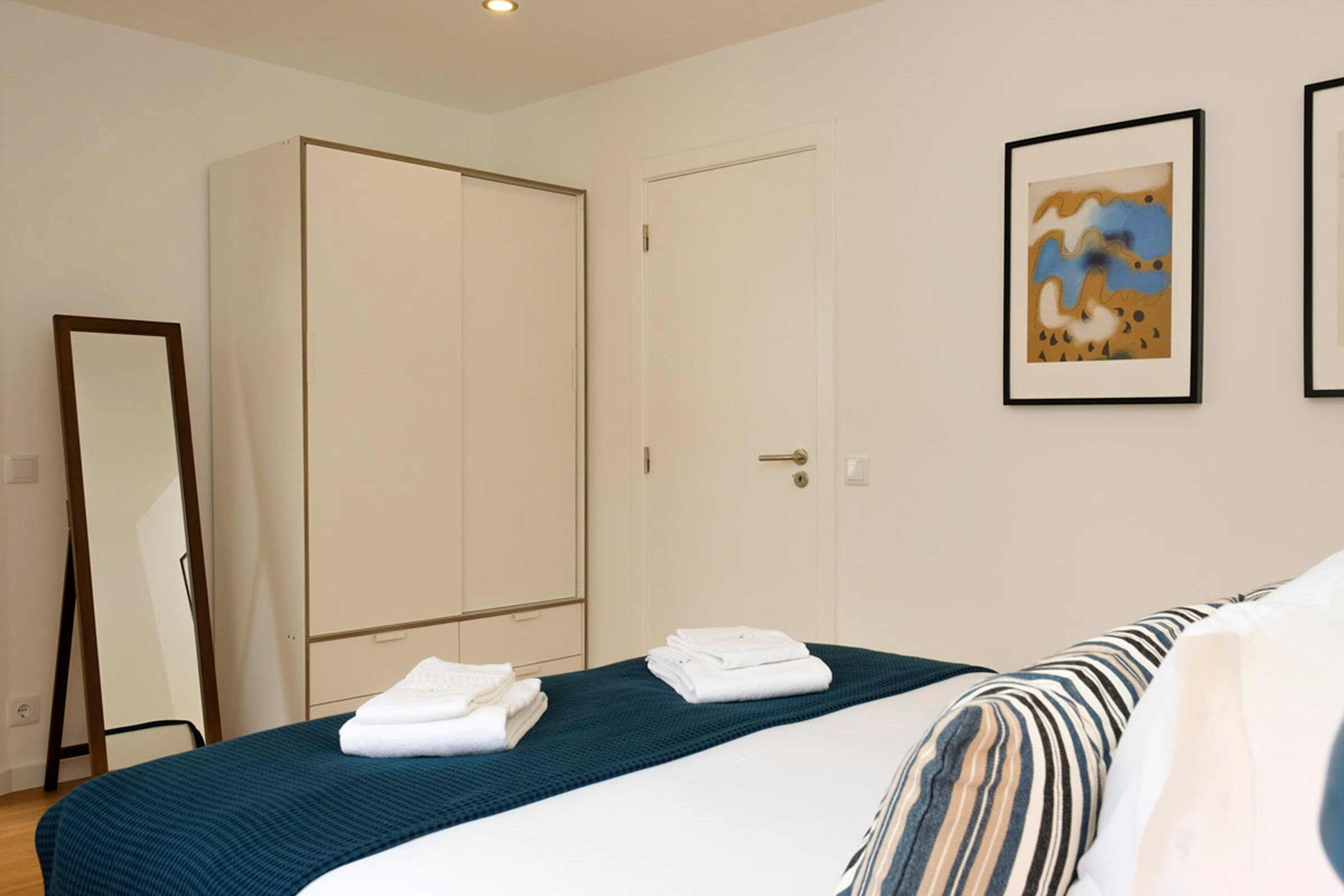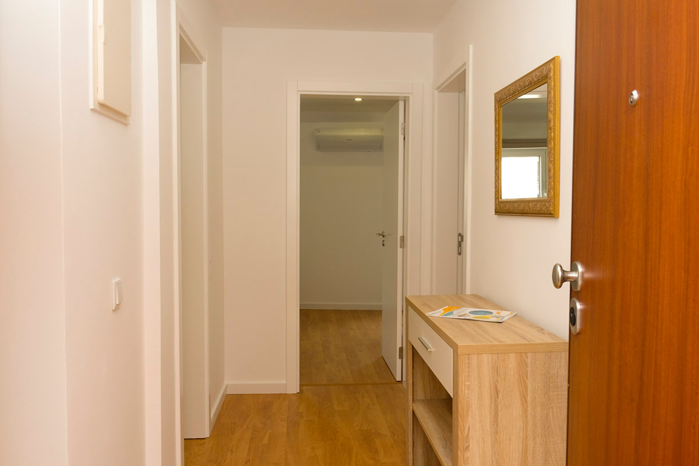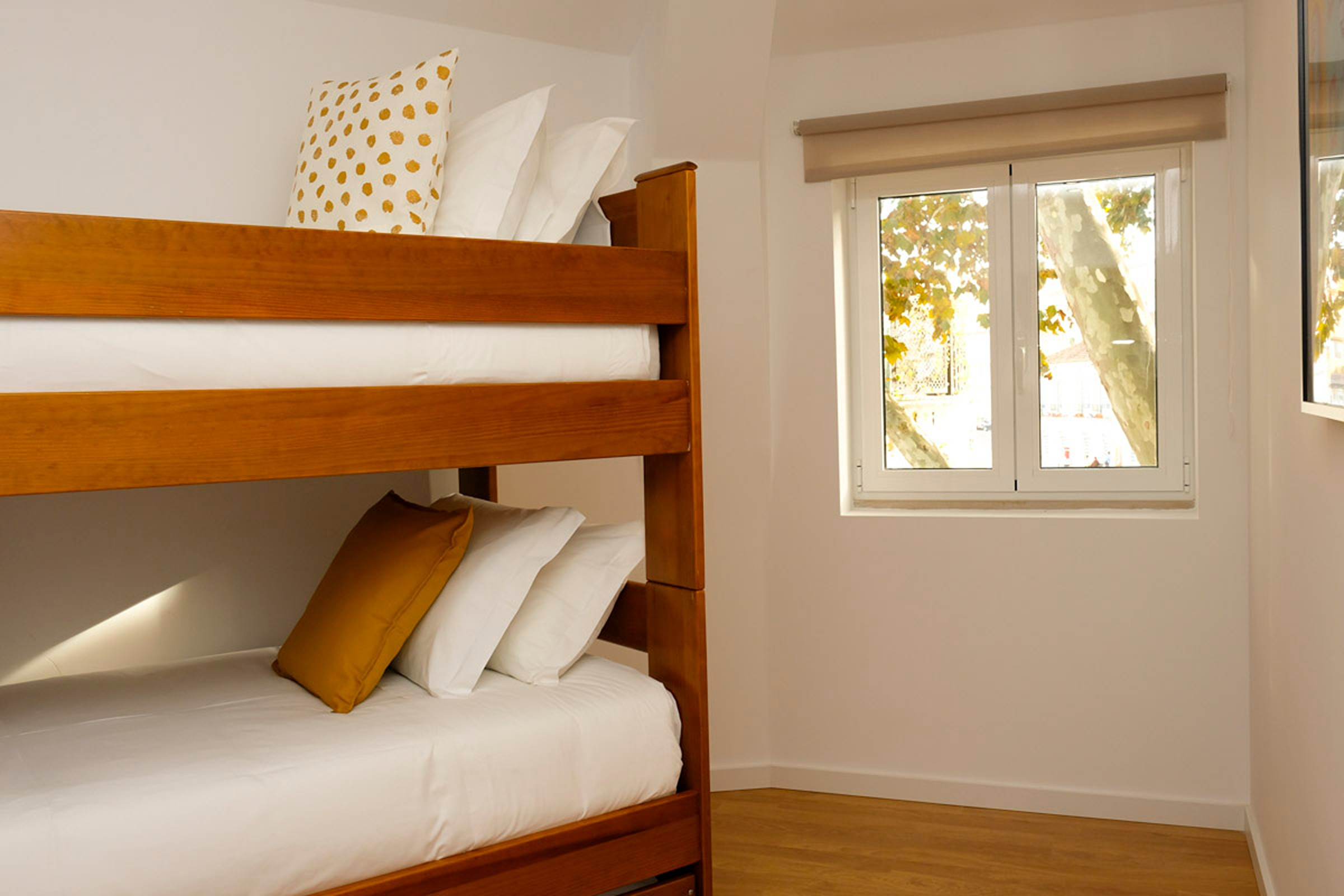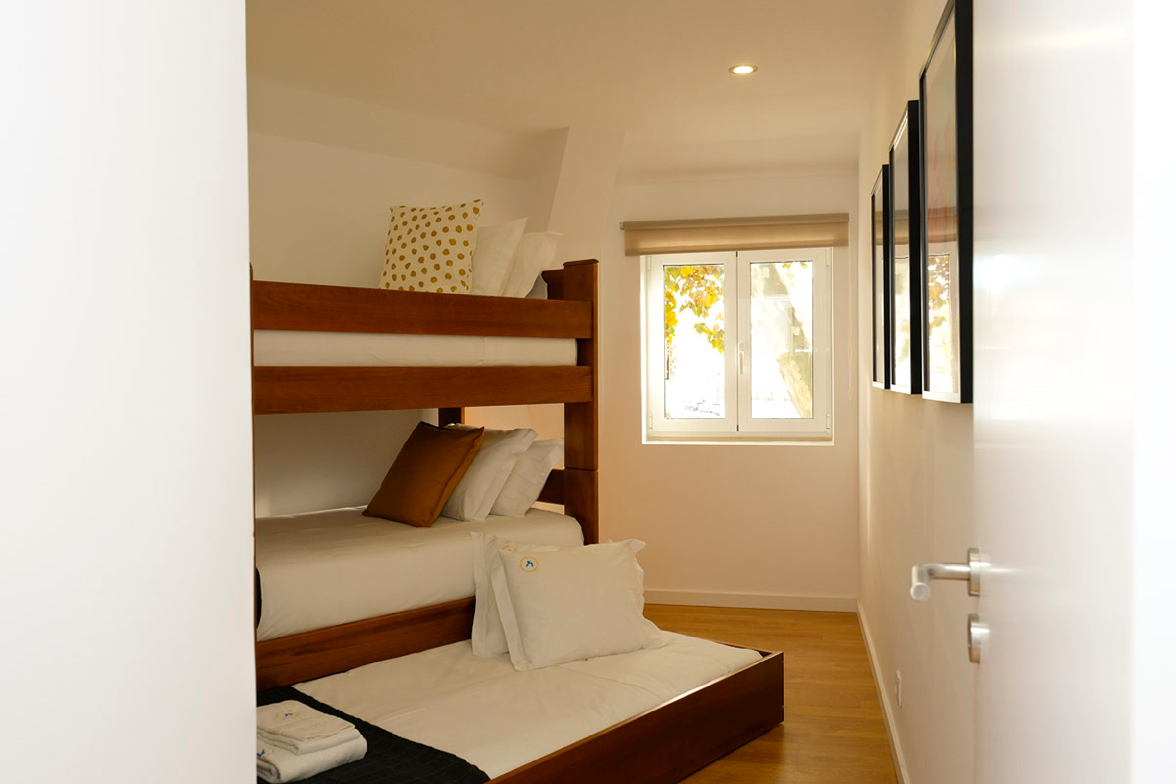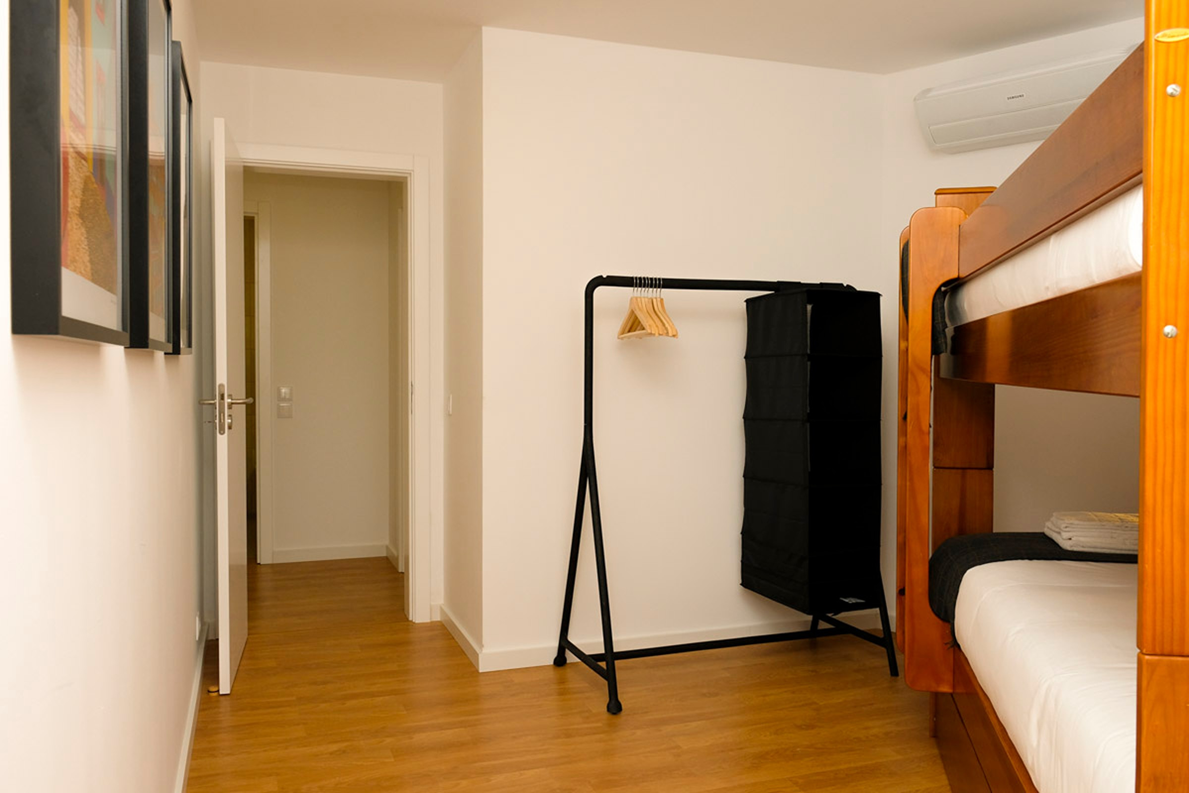 O hall dá acesso a dois quartos. Um dos quartos tem um beliche para 3 pessoas, ideal para adultos ou para crianças. O outro quarto tem uma cama de casal e uma pequena varanda. Existe uma casa de banho completa com chuveiro que serve os quartos. Internet WI-FI em toda a casa.