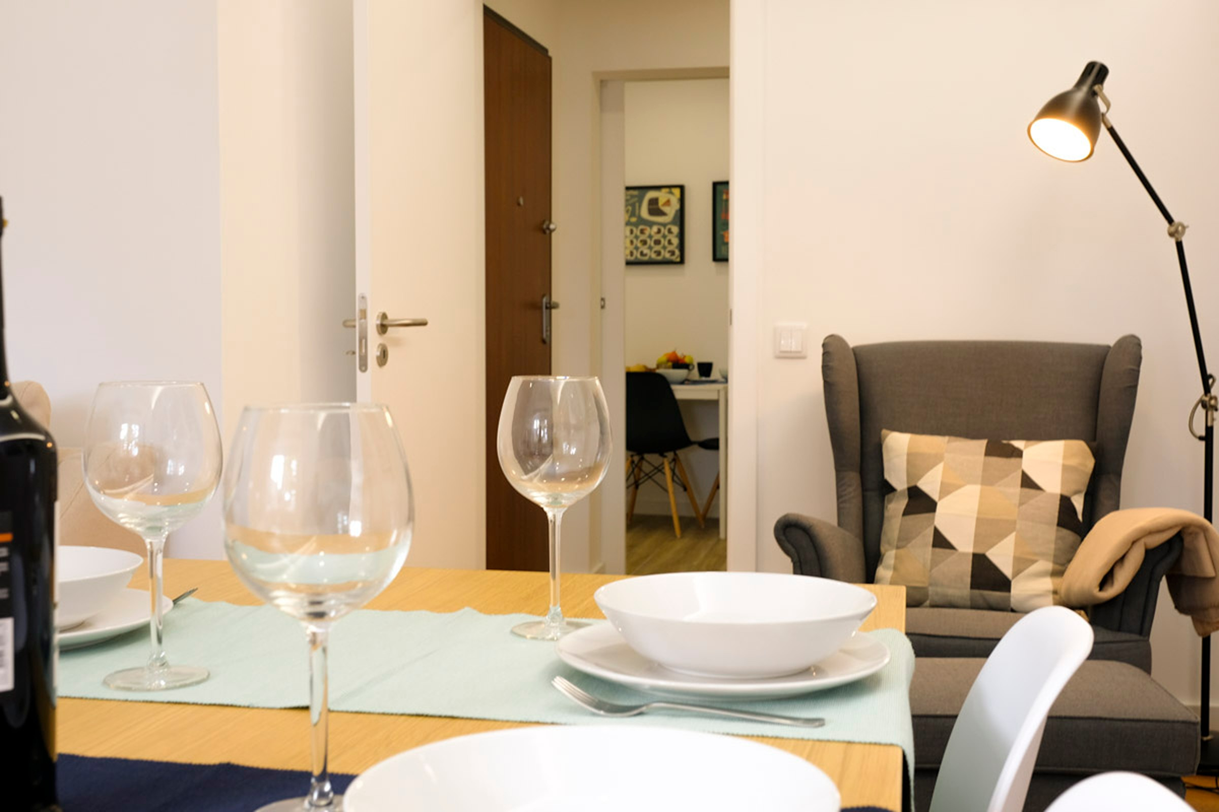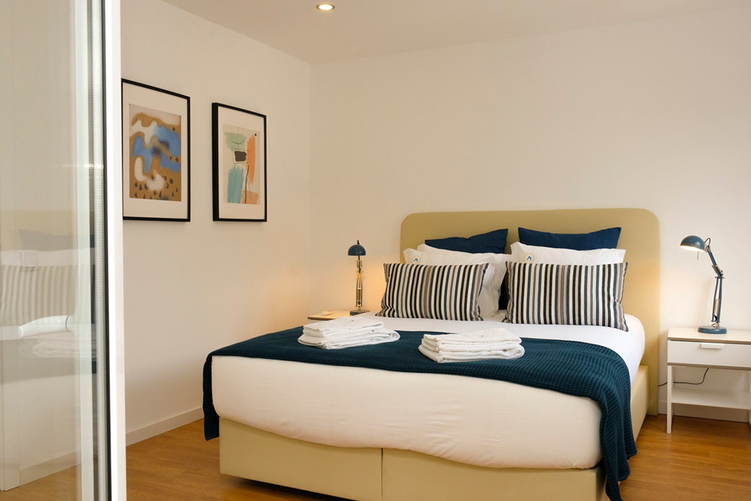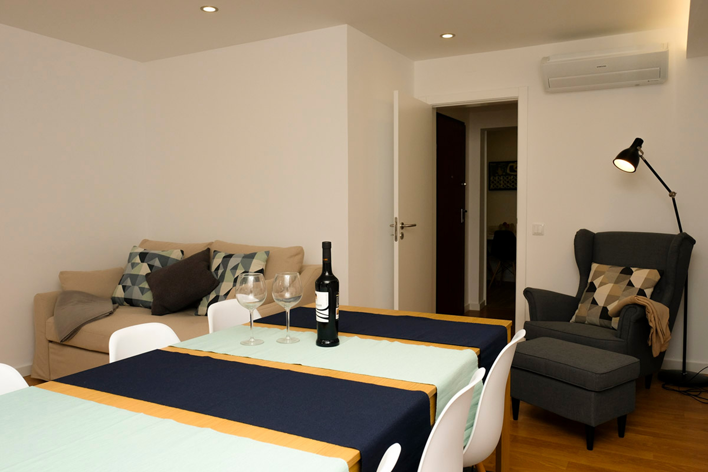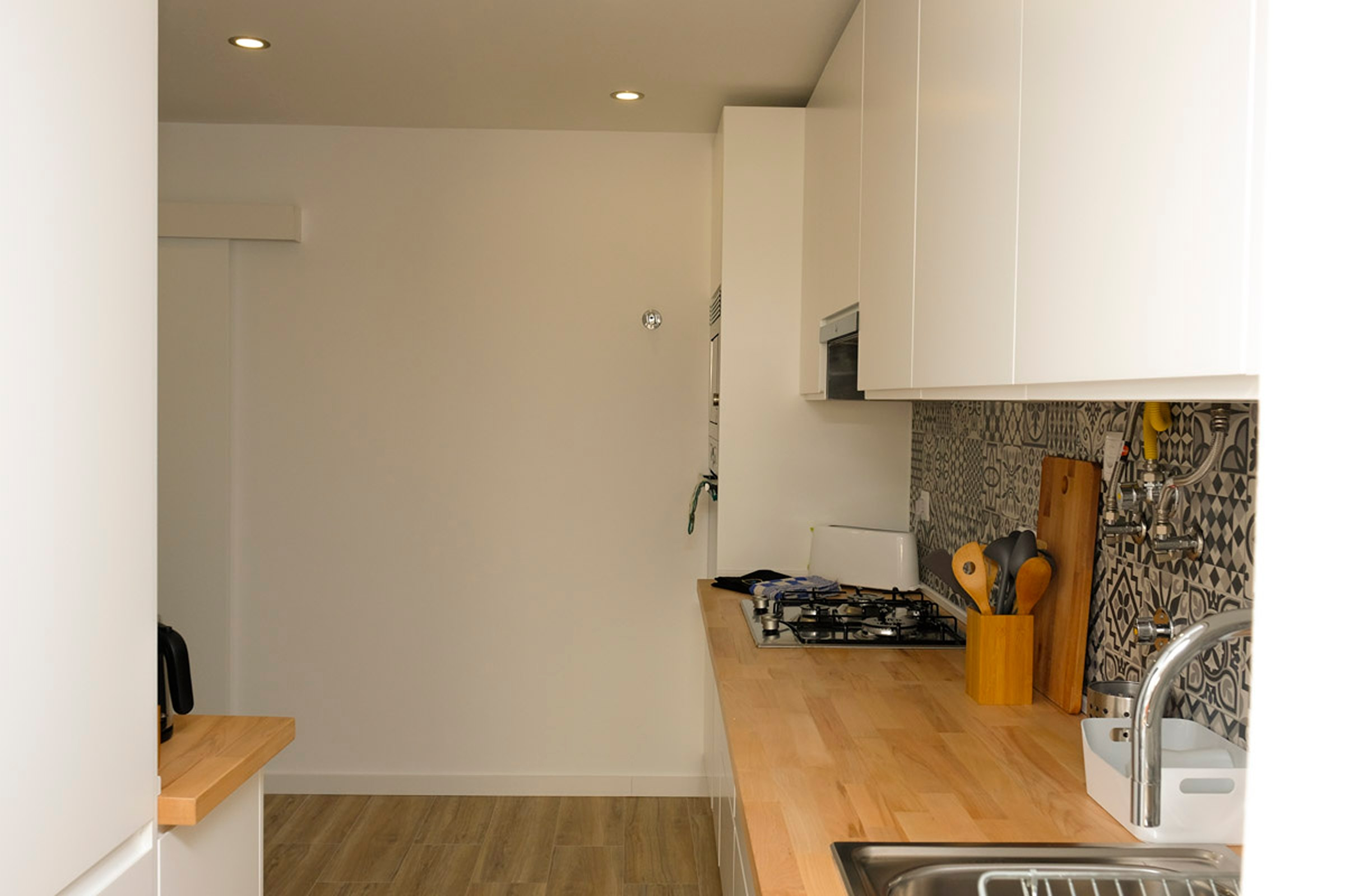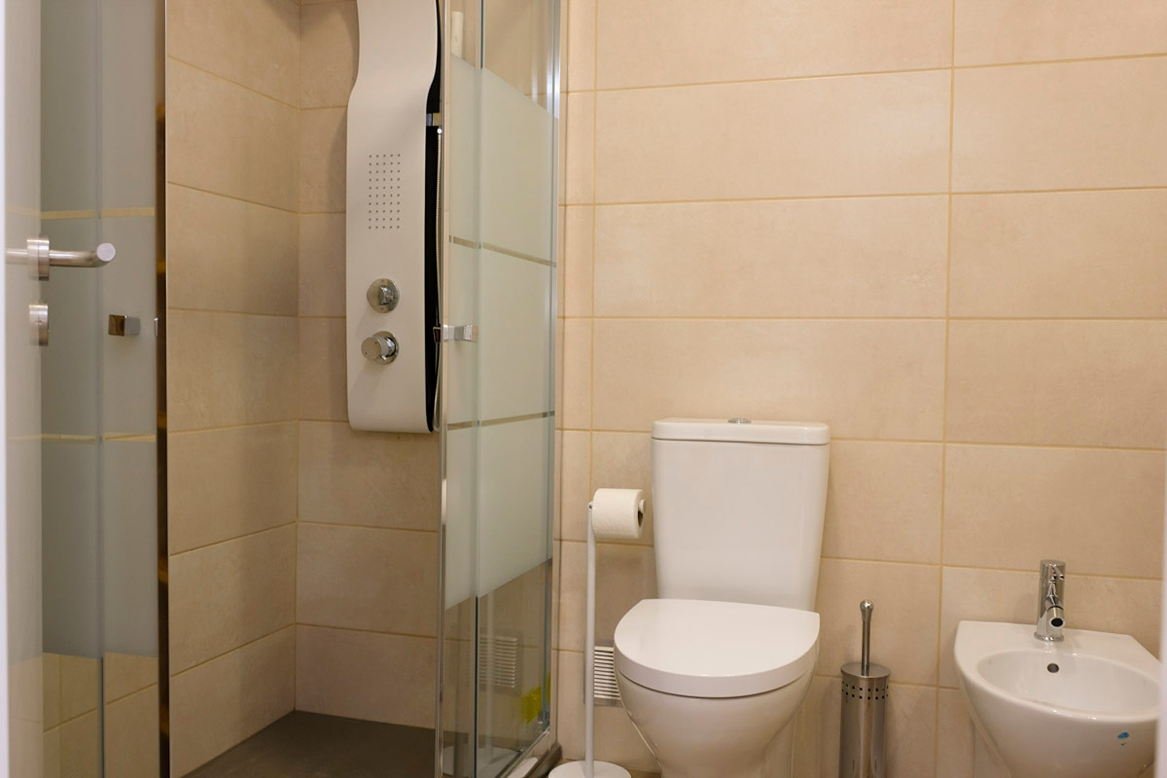 O hall dá acesso a dois quartos. Um dos quartos tem um beliche para 3 pessoas, ideal para adultos ou para crianças. O outro quarto tem uma cama de casal e uma pequena varanda. Existe uma casa de banho completa com chuveiro que serve os quartos. Internet WI-FI em toda a casa.