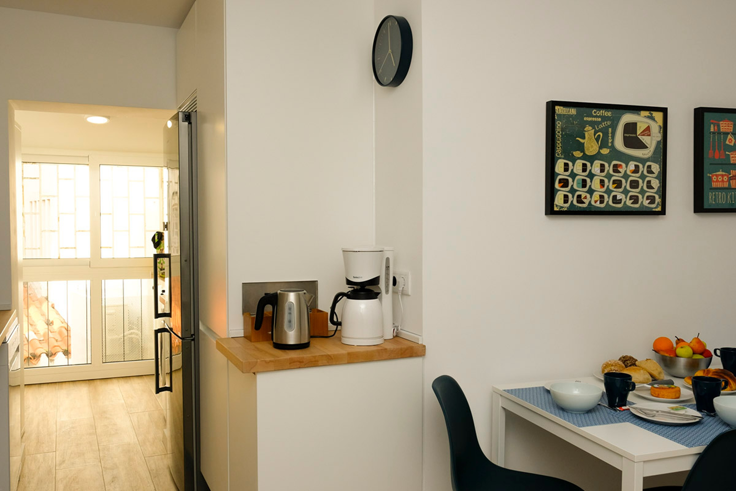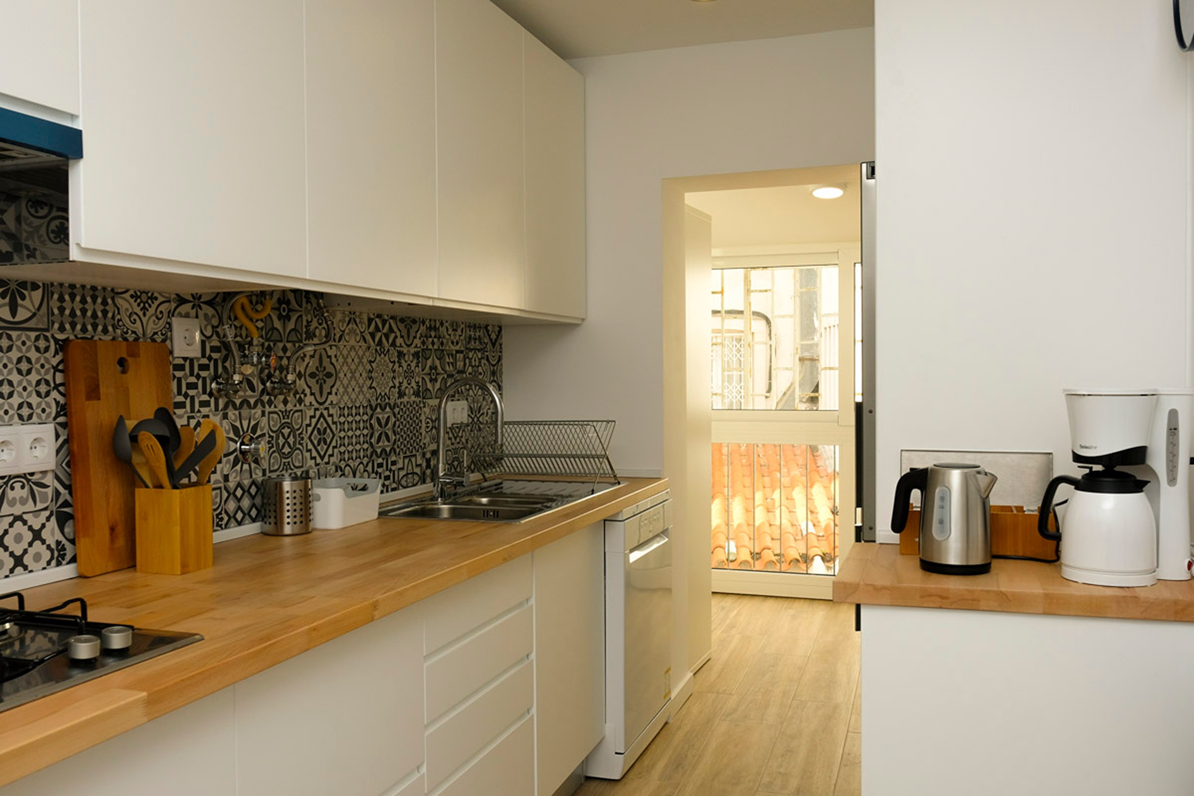 A cozinha é ampla e alegre, totalmente equipada com tudo o que necessita para preparar as suas refeições caseiras.