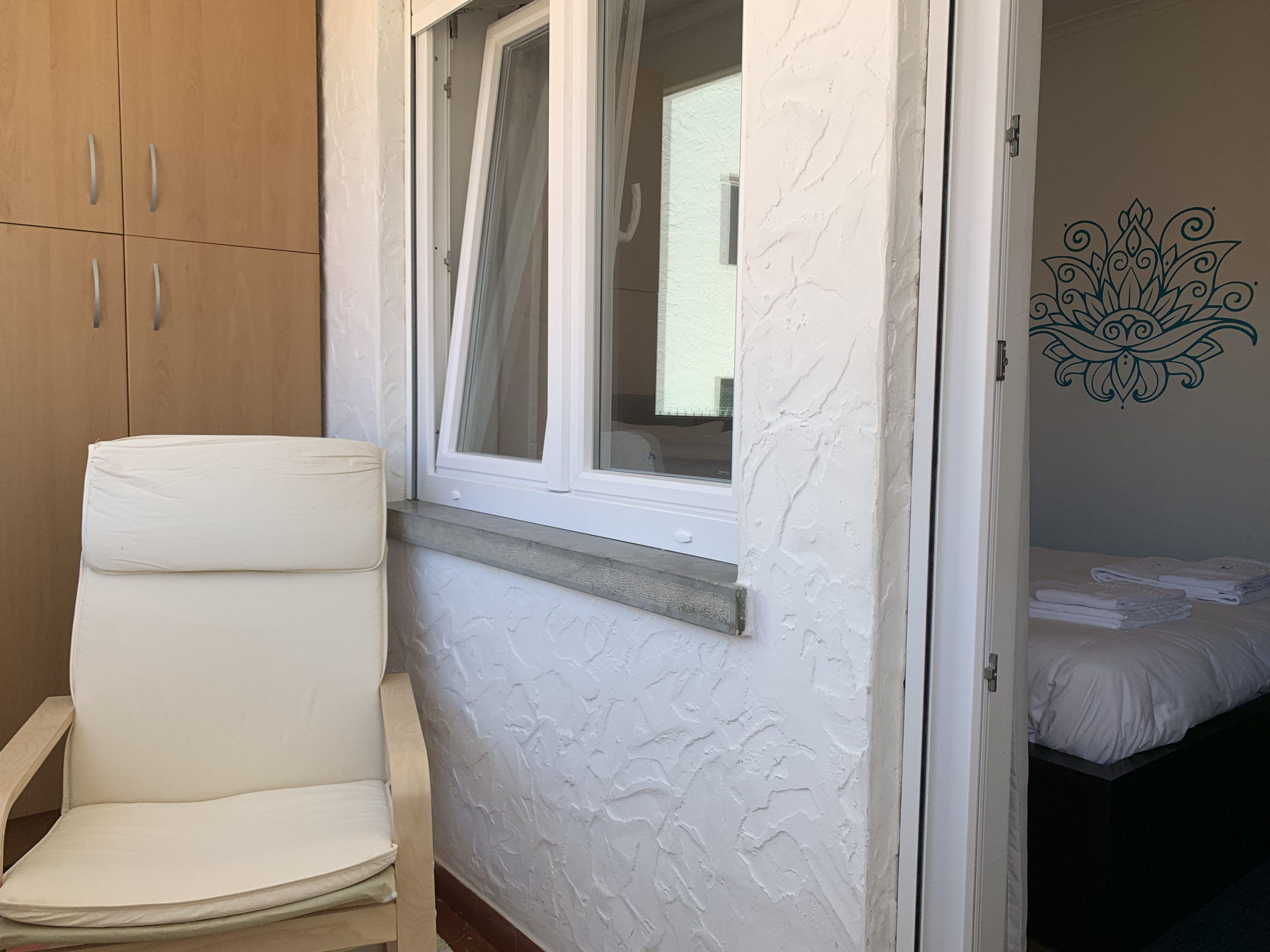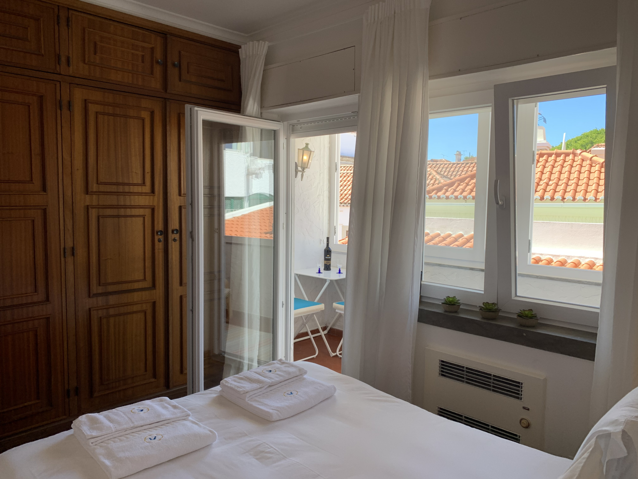 O quarto tem cama de casal, roupeiro, e uma marquise muito agradável para desfrutar de uma tarde de lazer. A casa de banho junto ao quarto tem cabine de duche. Sabonete, gel de banho, shampoo e papel higiénico são facultados, bem como secador de cabelo.