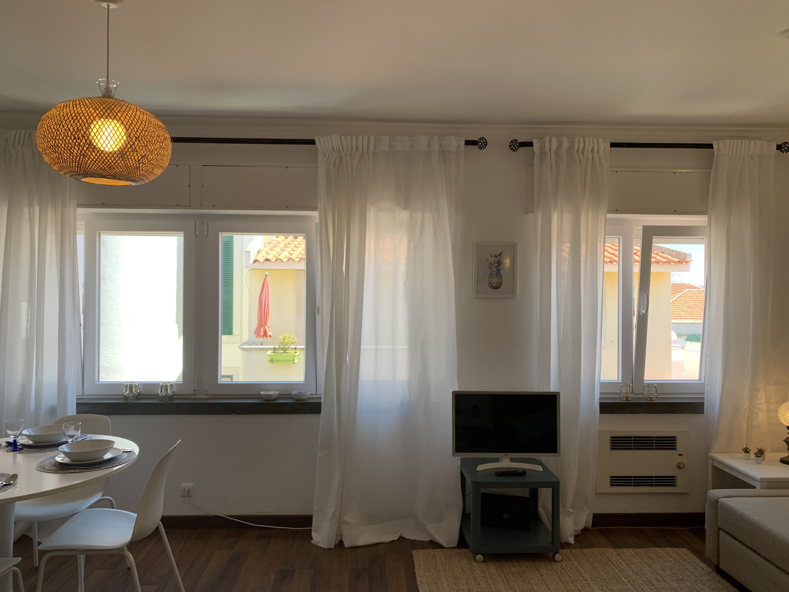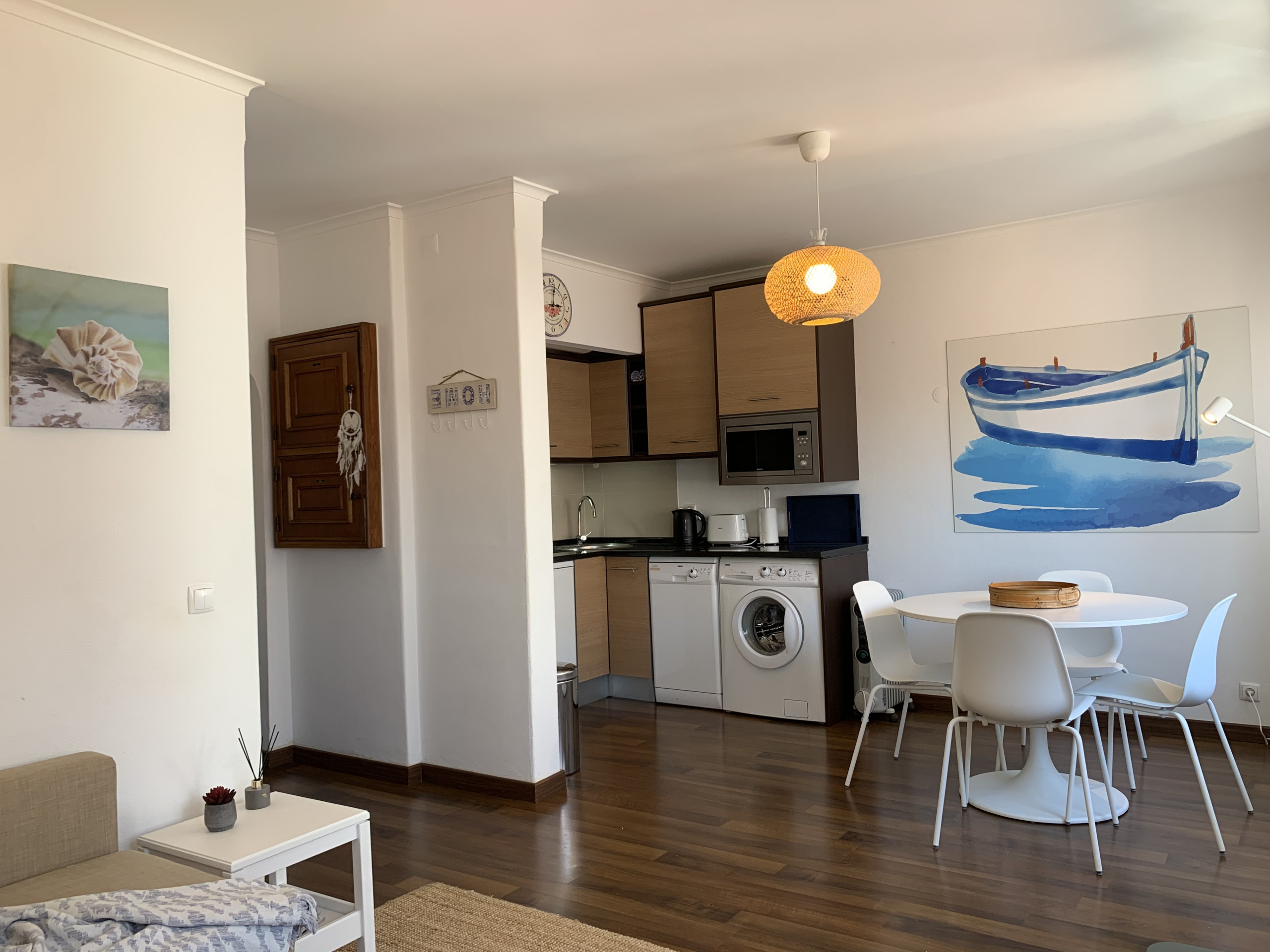 A sala tem sofá, TV e WI-FI extensível a todo o apartamento. Inclui também uma zona de refeições e uma kitchenette totalmente equipada com tudo o que necessita para preparar as suas refeições caseiras.