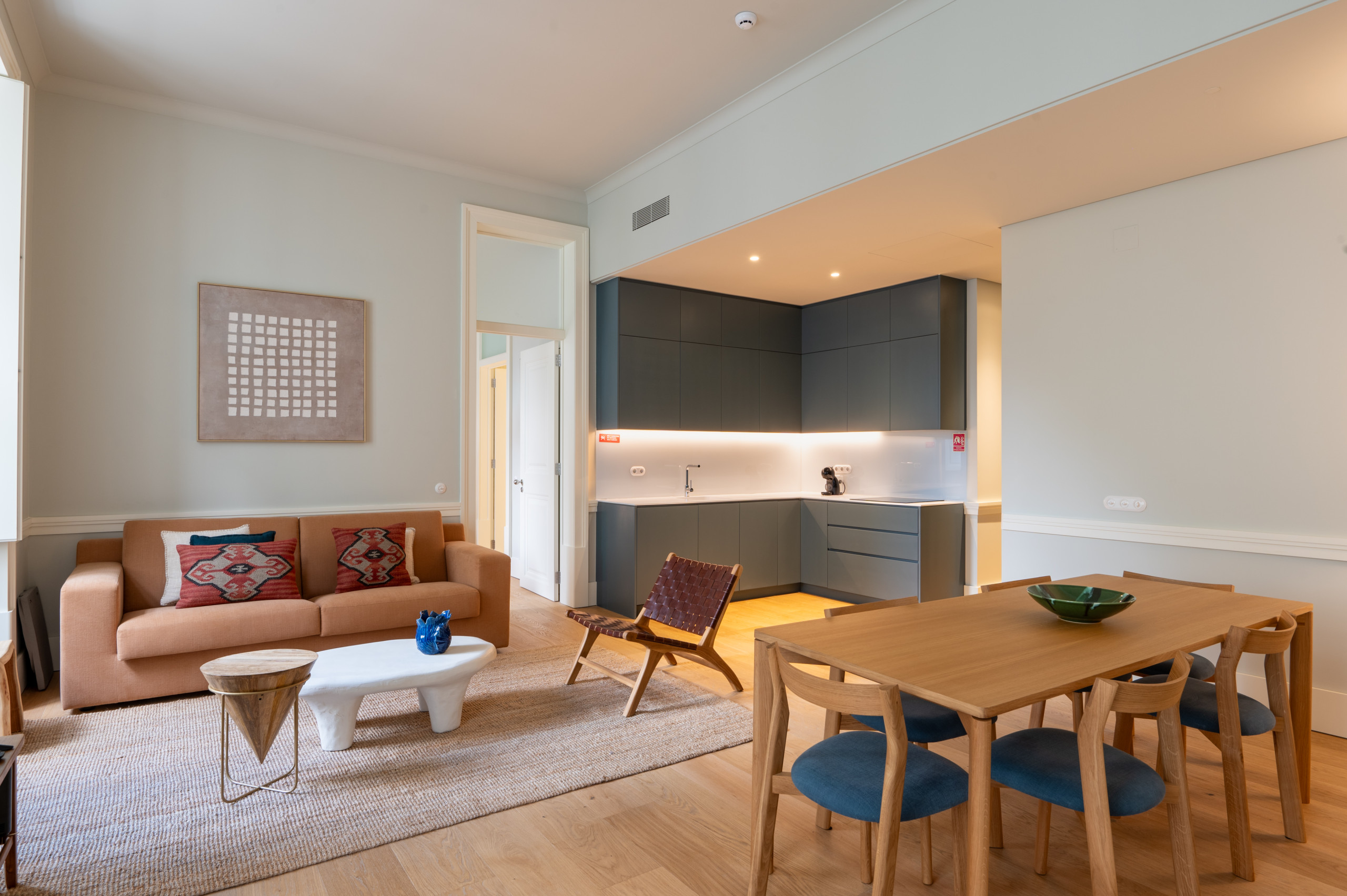 Dispõe de elevador, acesso internet (wifi), ar-condicionado, Televisão.A cozinha, está equipada com frigorífico, microondas, forno, congelador, torradeira, louça/talheres, máquina de café e jarro eléctrico.