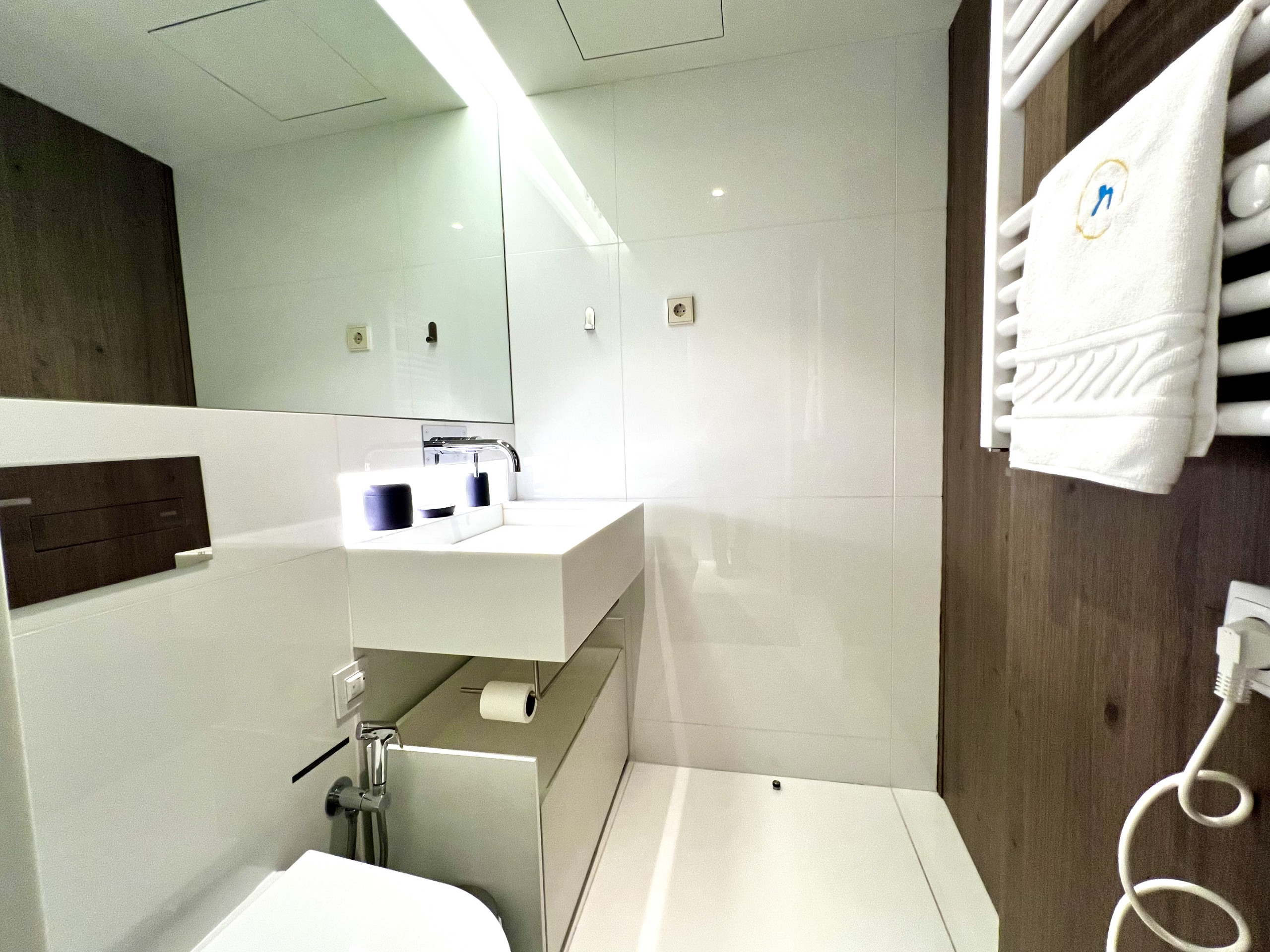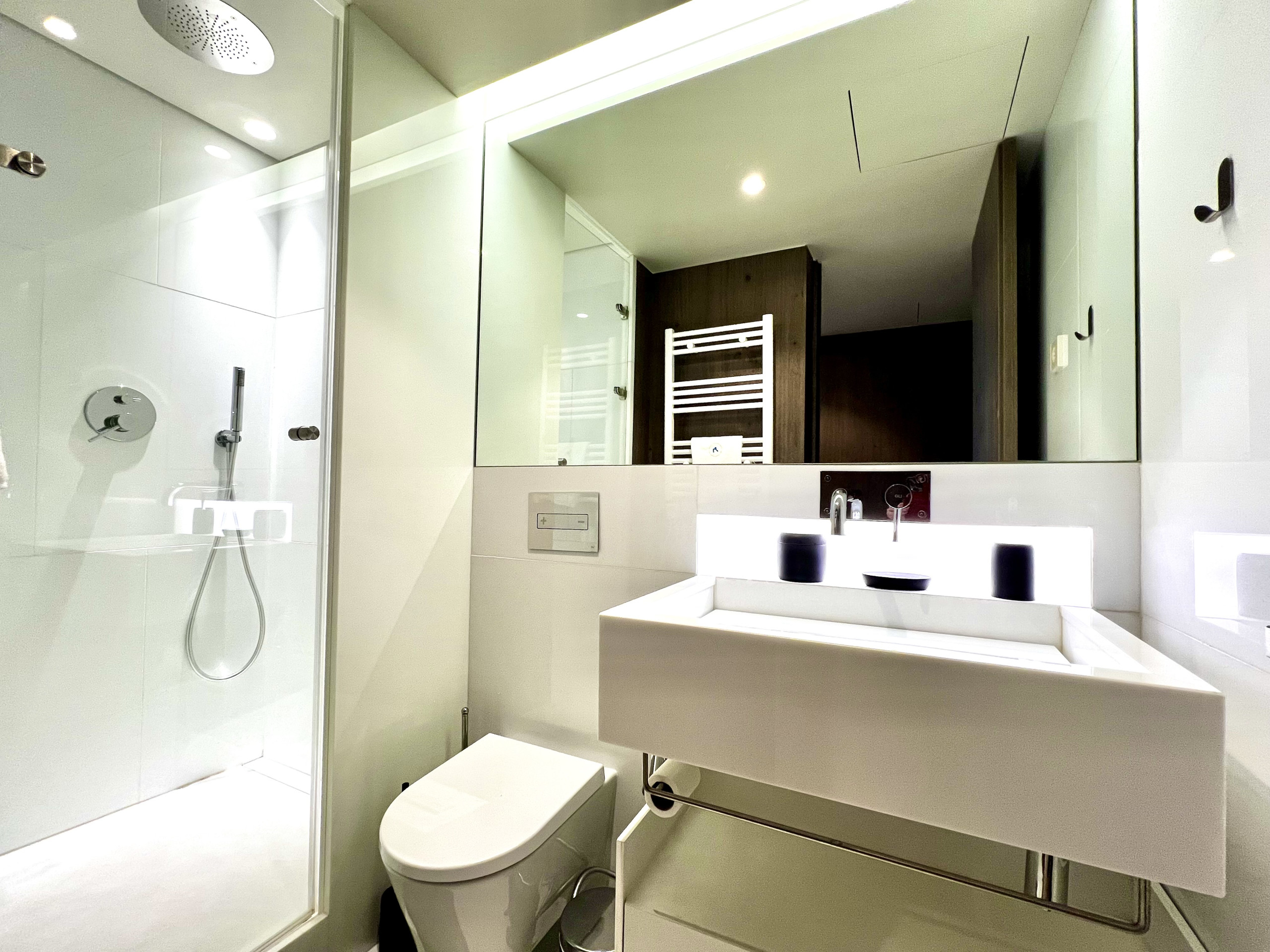 A casa de banho tem base de chuveiro.