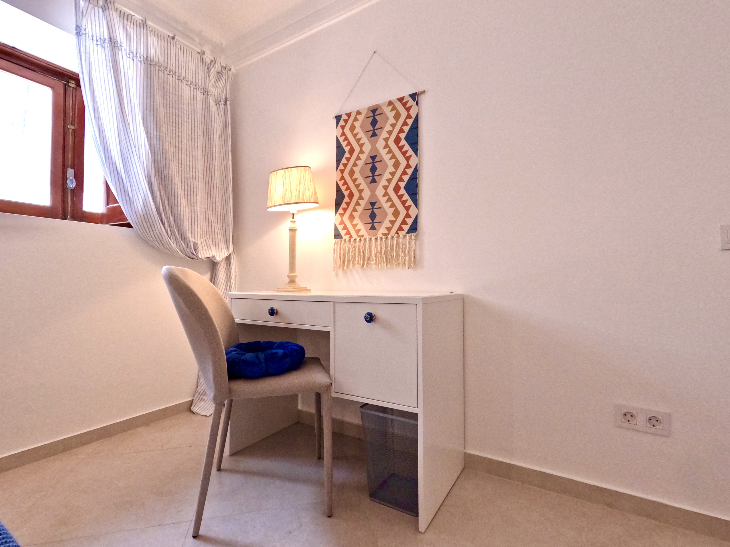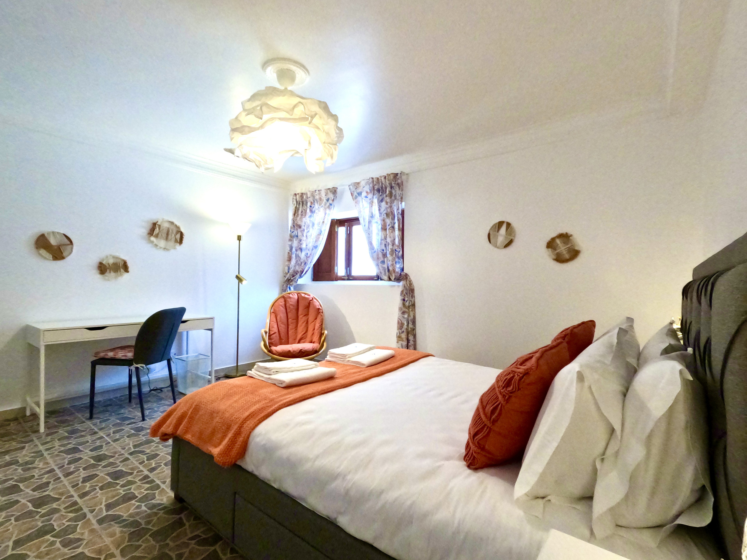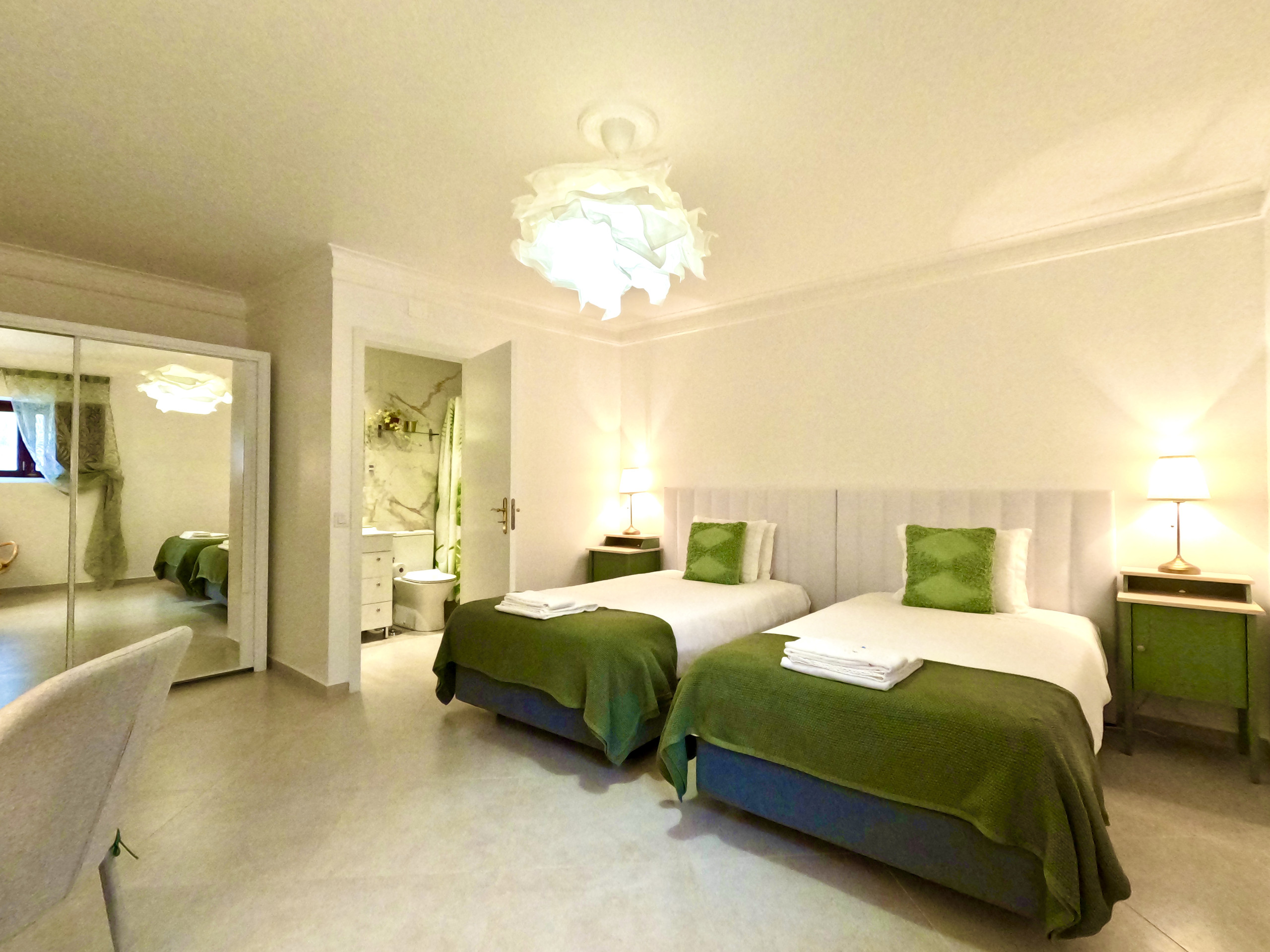 O quarto Buganvília tem uma cama de casal e uma casa de banho privada com banheira. O quarto Jacarandá dispõe de duas camas individuais e uma casa de banho privada com banheira. O quarto Mimosa tem uma cama de casal, e apesar de não ter casa de banho em suite, tem uma casa de banho bastante ampla mesmo junto ao quarto. Todos os quartos dispõem de roupeiro, secretária com cadeira e um cadeirão.