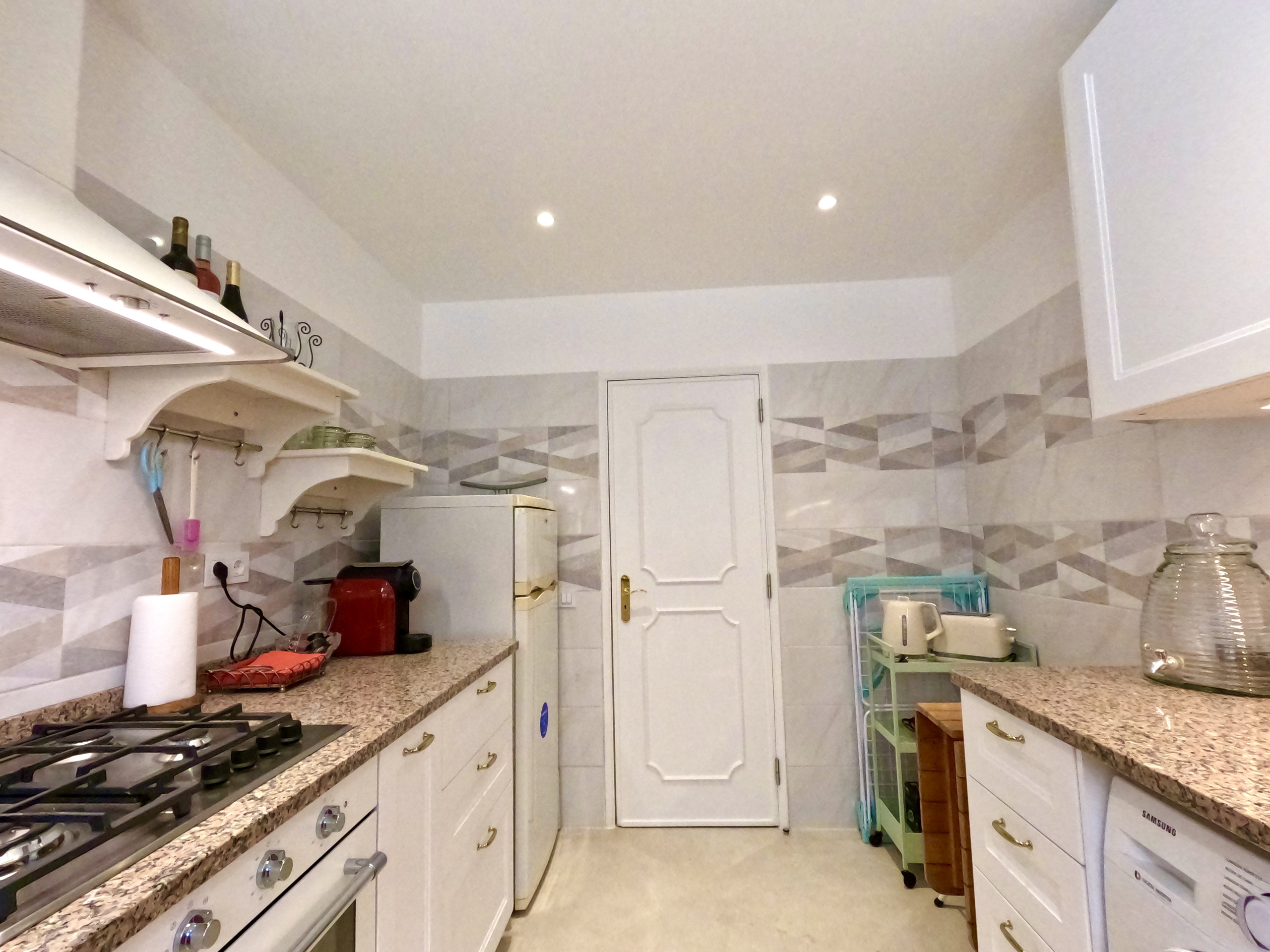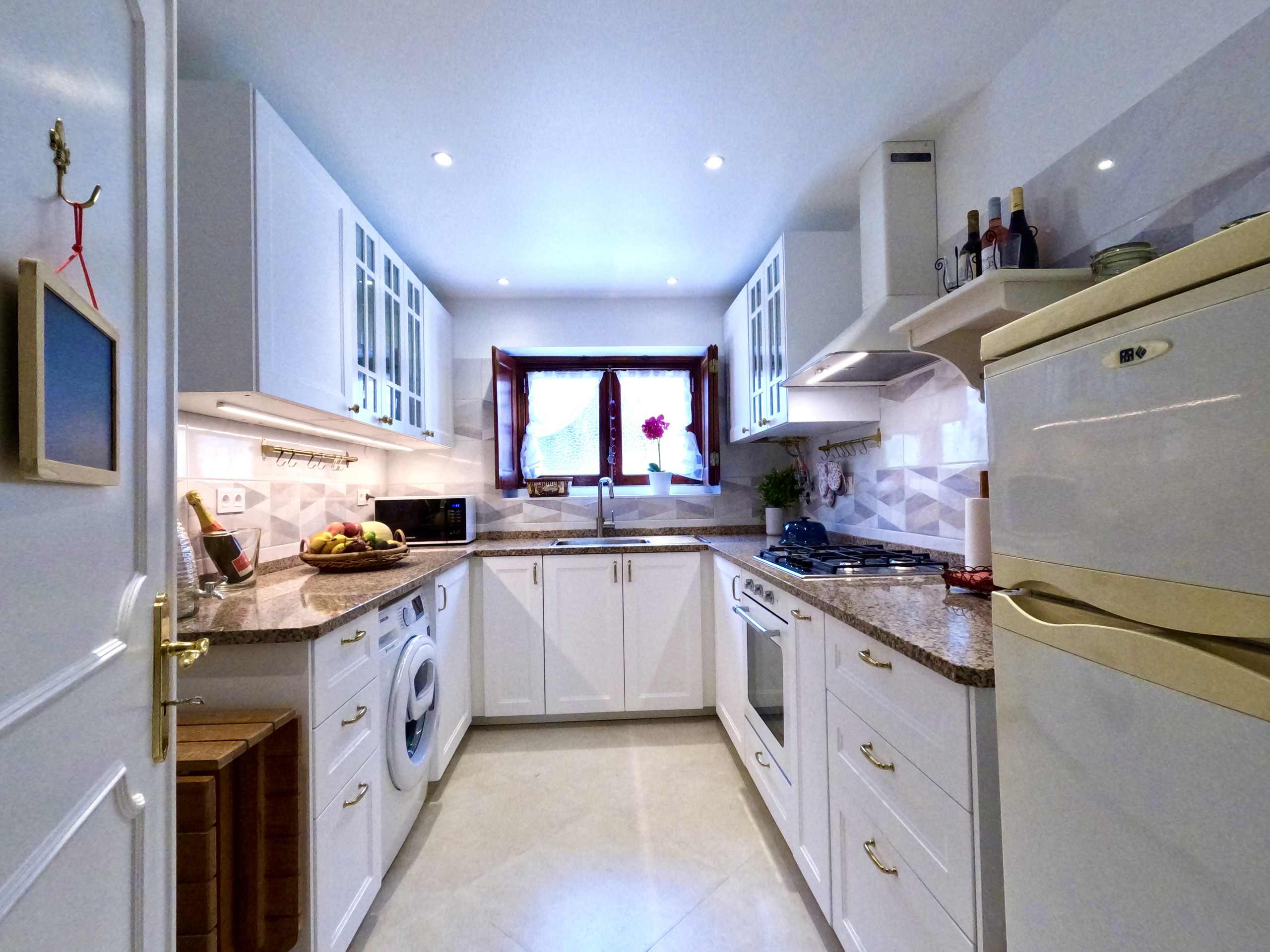 A cozinha é moderna e está equipada com tudo o que necessita para preparar as suas refeições. Tem frigorífico e congelador, fogão e forno, micro-ondas, máquina de café expresso e máquina de café americano, chaleira eléctrica, torradeira, misturadora, e todo o tipo de louças e talheres. Dispõe ainda de máquina de lavar roupa, estendal, ferro e tábua de engomar. Existe secador de cabelo.