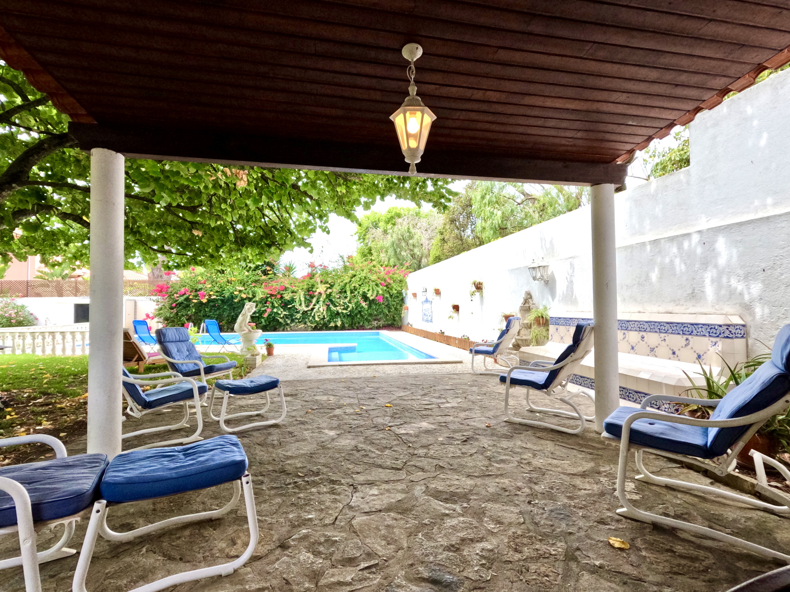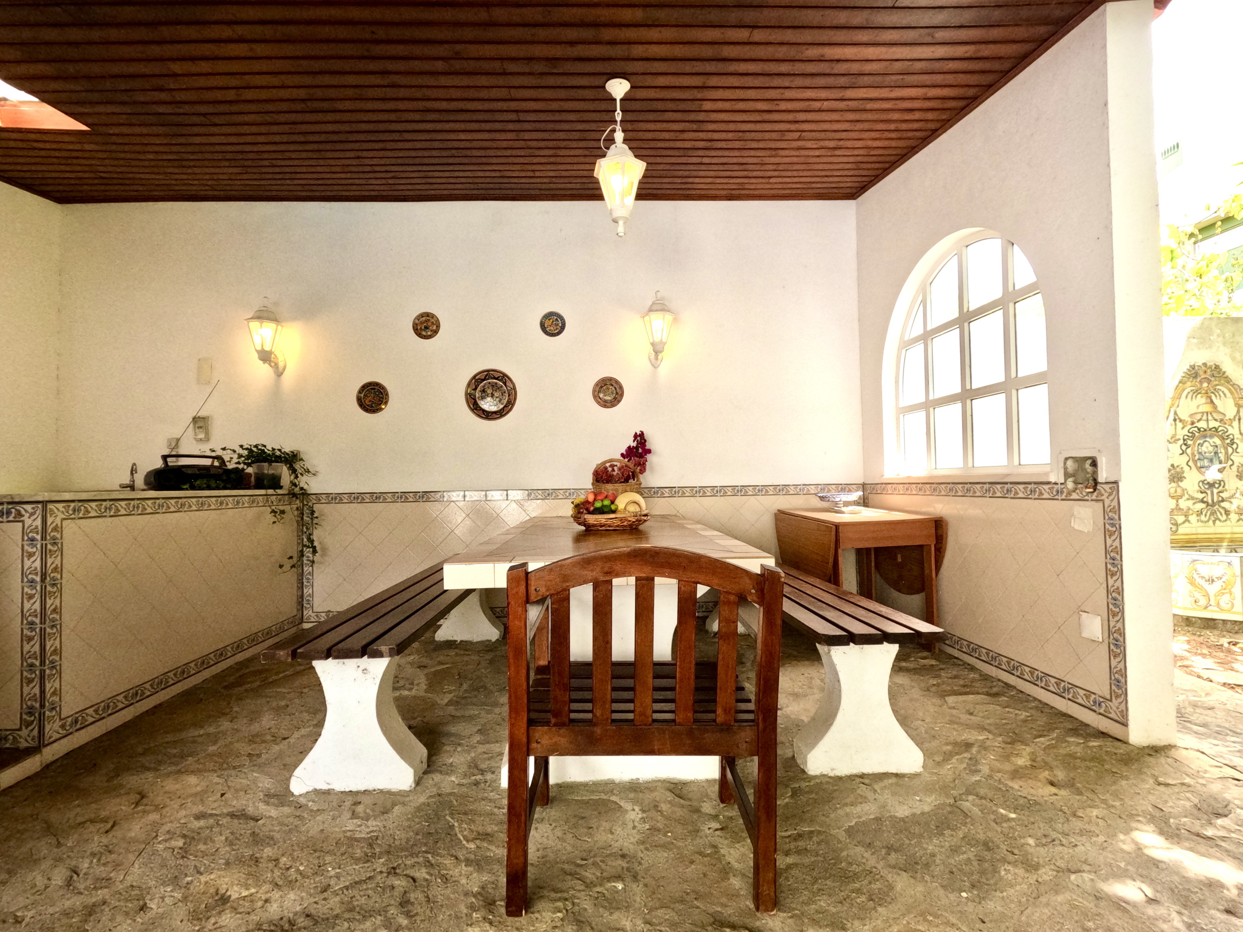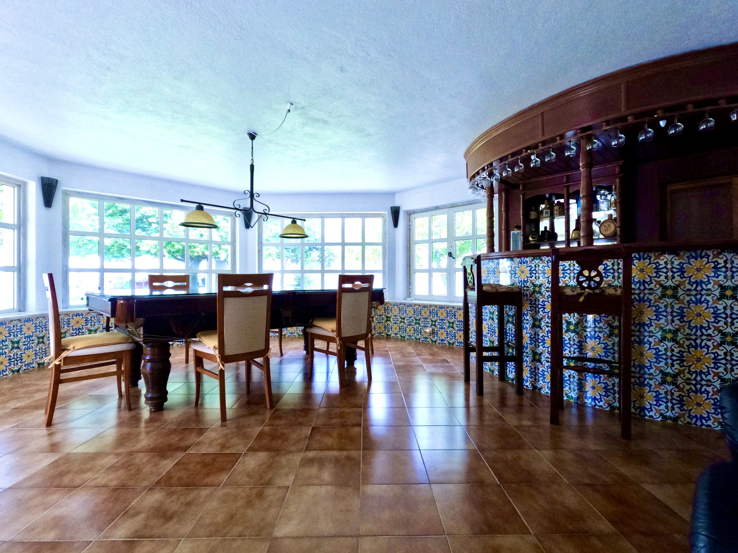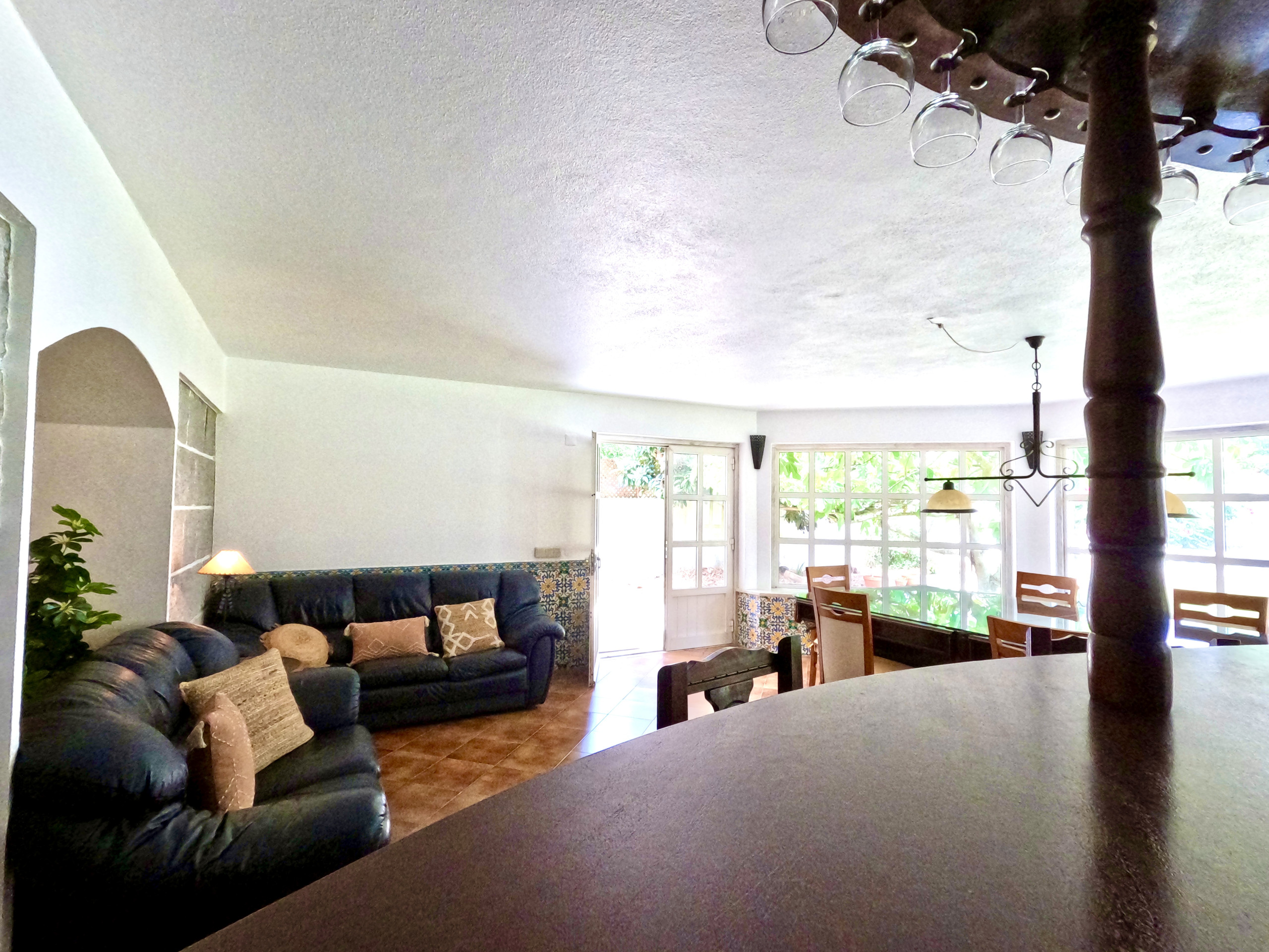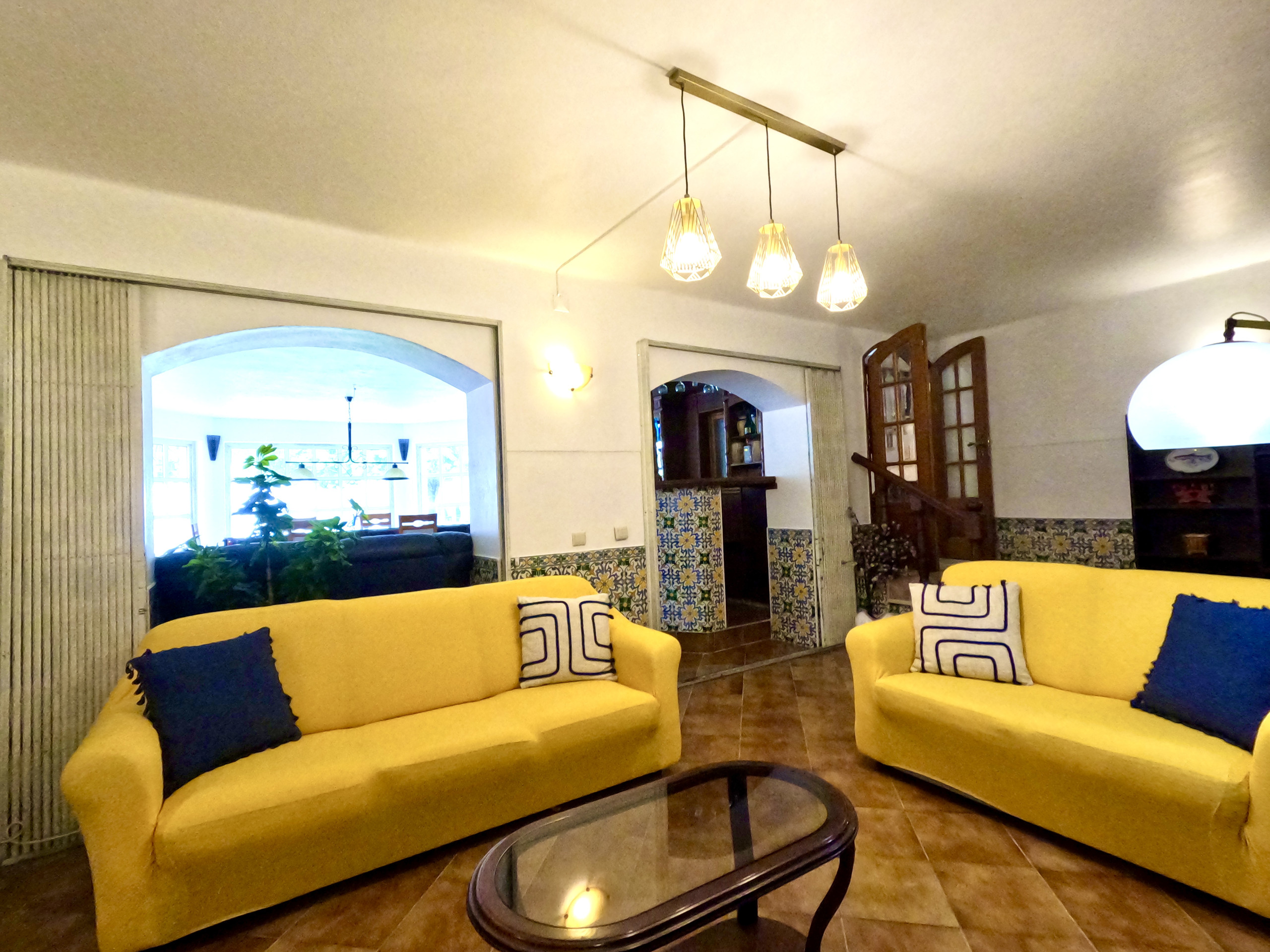 A sala de estar é muito confortável e tem uma TV e ligação internet WI-FI em toda a casa. A sala de jantar é ampla e está virada para o jardim. Tem uma mesa de refeições para 6 pessoas e uma zona de bar.