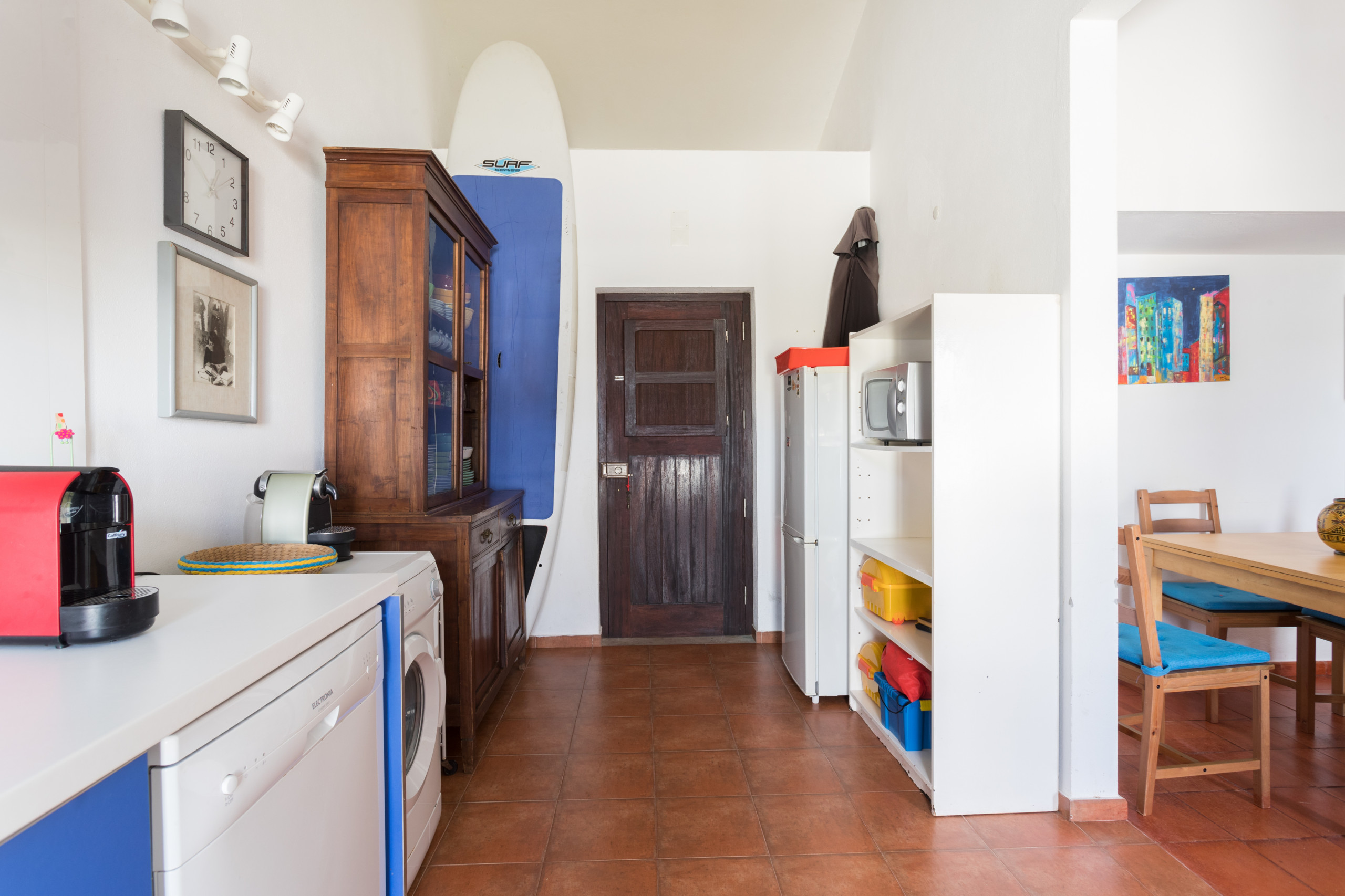 A cozinha, está equipada com frigorífico, microondas, forno, congelador, máquina de lavar roupa, máquina de lavar louça, louça/talheres, utensílios/cozinha e cafeteira.