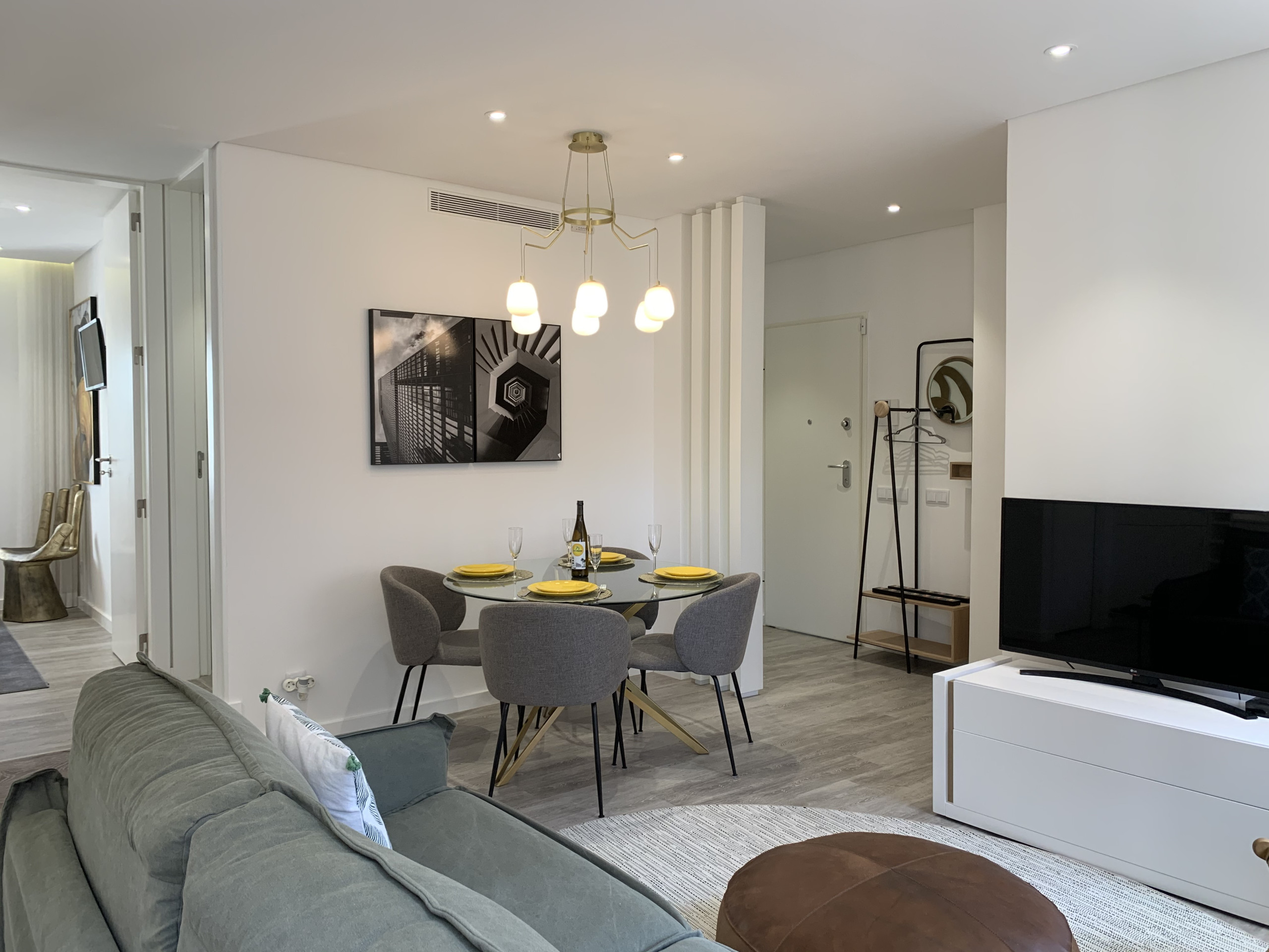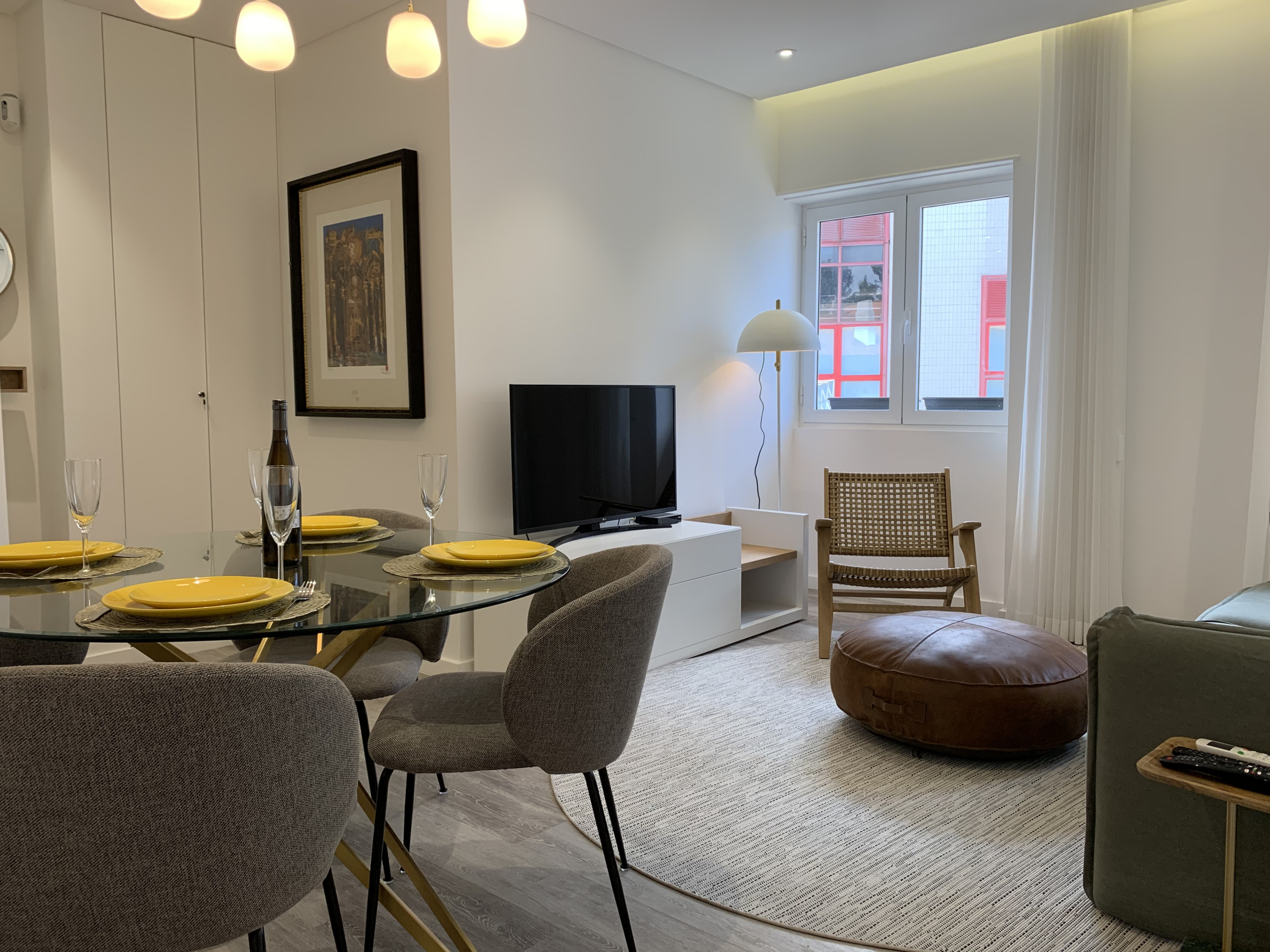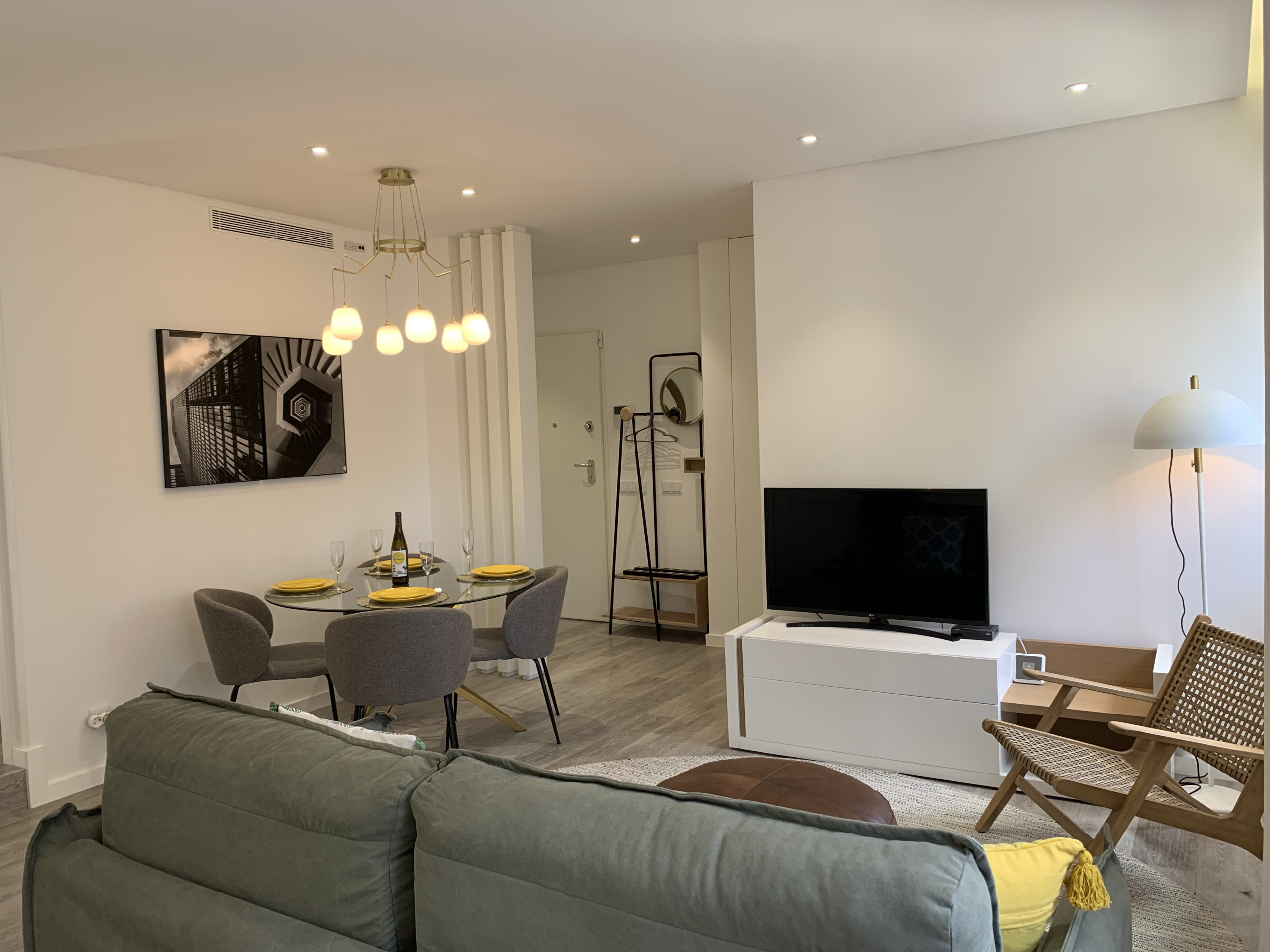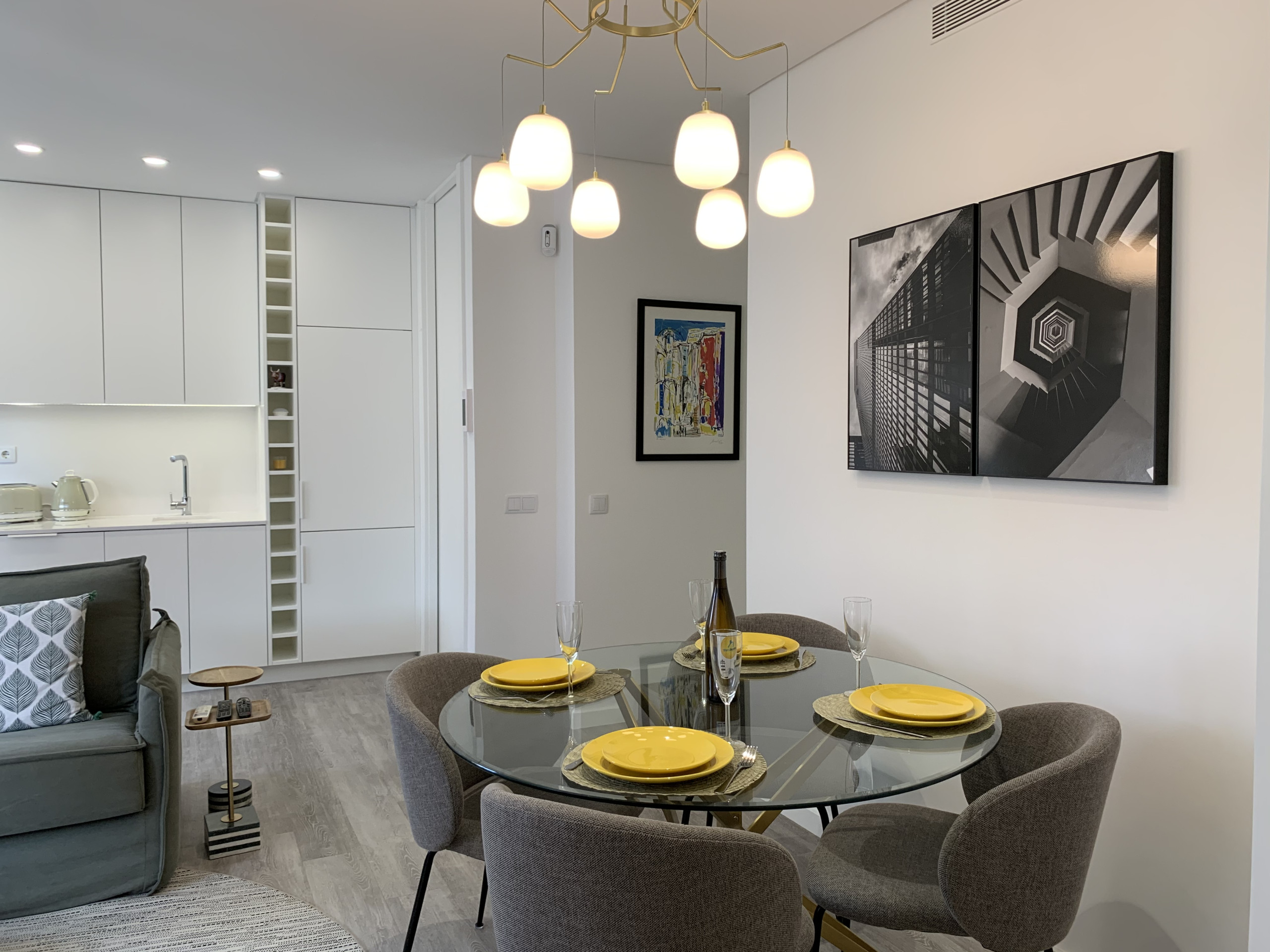 The living room has TV and WI-FI throughout the apartment. It also includes a dining area with a table for six people and a fully equipped kitchenette with everything you need to prepare your homemade meals.