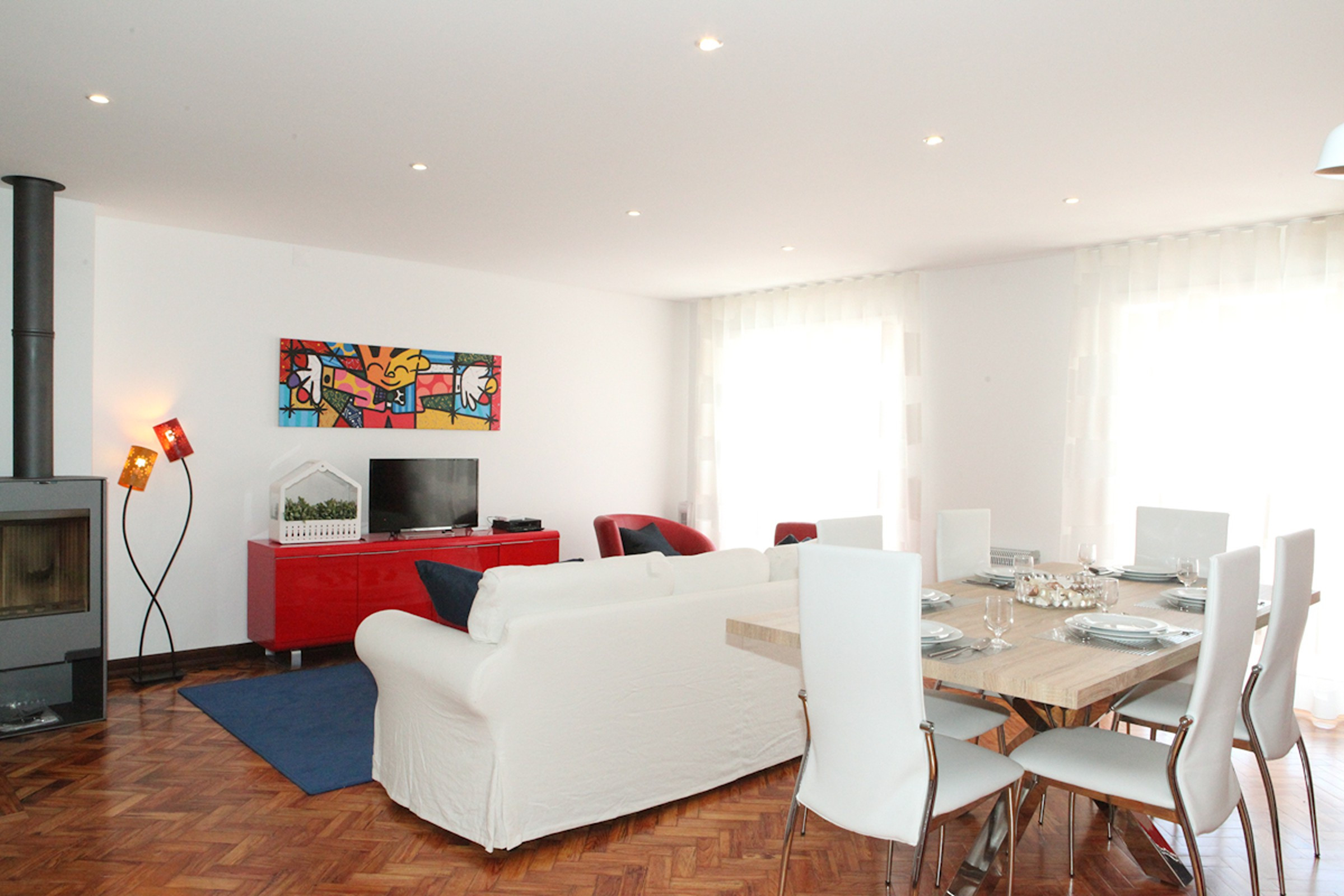 This apartment is located in the heart of the village of Cascais, surrounded by traditional shops, restaurants and bars, pastries, supermarkets and public transport. Just a 5-minute walk from the train station to Lisbon, bus station to Sintra and the beaches of the Estoril Coast. The apartment is a 2nd floor with no elevator but easy stairs. It's been completely renovated. When you enter the apartment there is a spacious and bright living room decorated in a modern style with TV and a dining area has a table and chairs for 6 people, where you can enjoy your meals at home. There is also Wi-Fi access throughout the house. The living room has access to a balcony with tables and chairs for you to enjoy the fresh air during a good breakfast or even a drink at the end of the day.