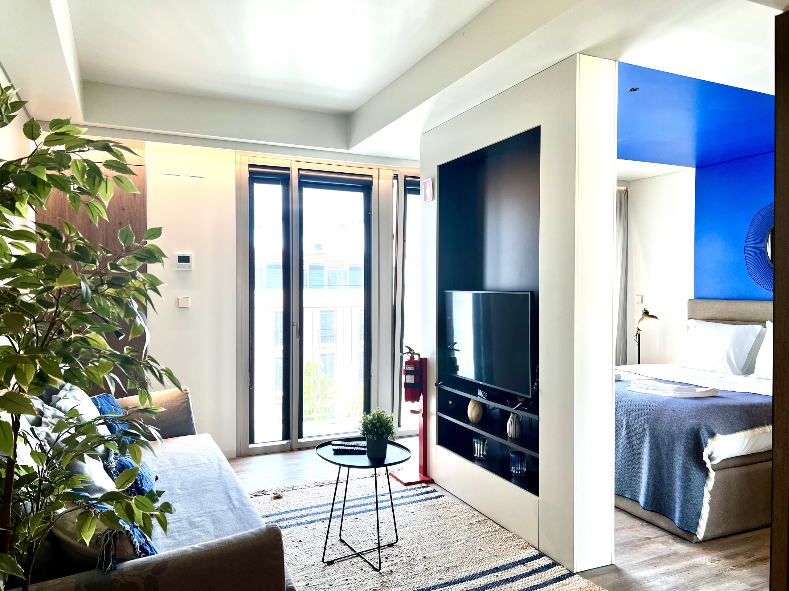 This modern and elegant flat is located in the Bairro de Santos-o-Velho, one of Lisbon's most iconic old neighbourhoods bordered by the famous 4km Avenida 24 de Julho, which starts at Praça D. Luis I in Cais do Sodré and runs all the way to Alcântara.