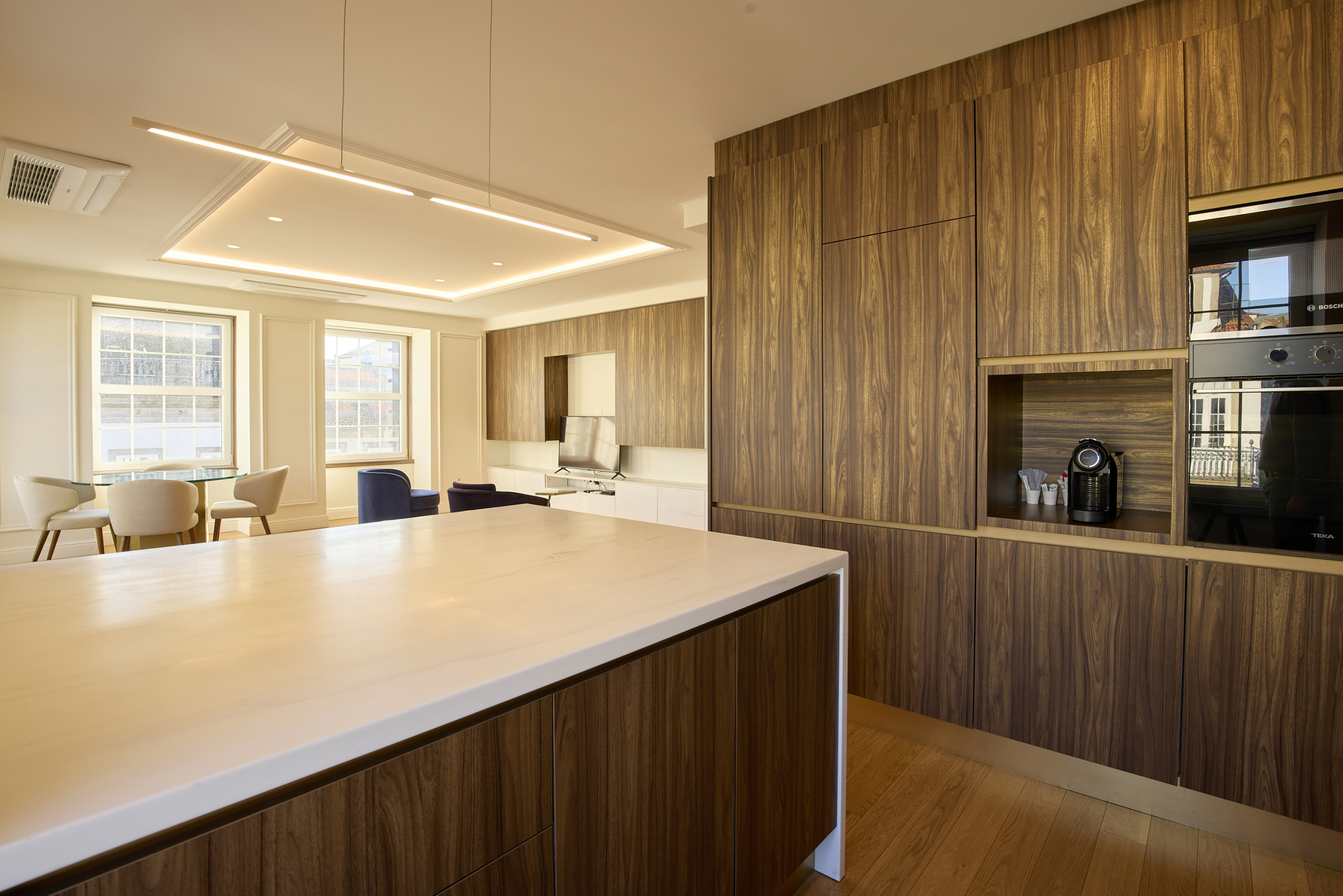 the kitchen, refrigerator, microwave, oven, freezer, dishwasher, dishes/cutlery and coffee machine are provided.