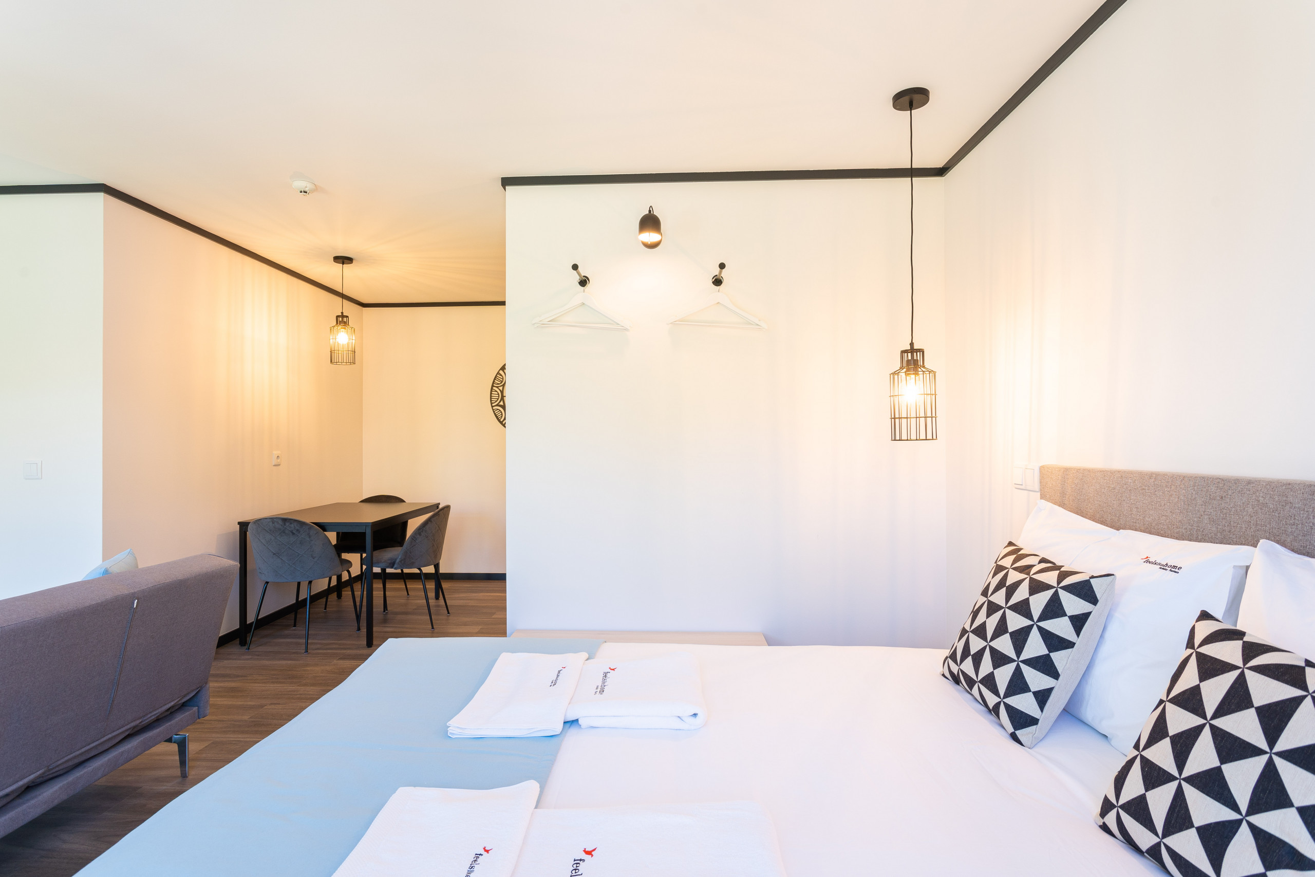 This cozy studio has everything you need for your next vacation. Here you'll find one double bed, one bathroom with shower, and a living area with a sofa and a fully equipped kitchenette.